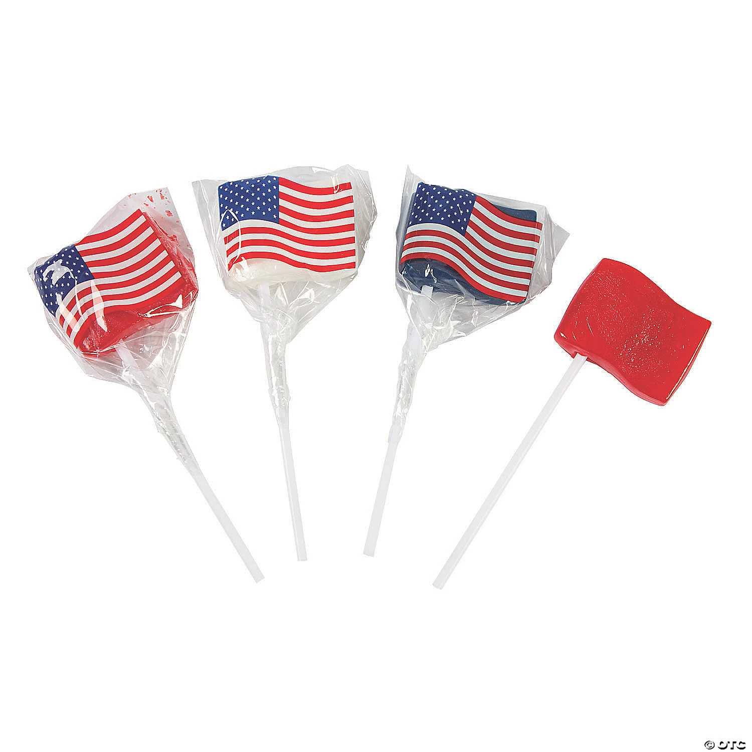 Looking for some sweet treats for your next patriotic celebration? These patriotic pops are just the pick! Hand them out at a 4th of July parade or use them as party favors at a Memorial Day celebration or any party that calls for the taste of freedom. Each red, white or blue sucker is individually wrapped with American flag printed cellophane wrappers. Blue raspberry flavor. Each 2″ pop is on a 4″ plastic stick. Total wt., 7 oz. Fat-Free. © OTC• Candy is non-returnable. For more information, visit our “Return Policy” page located on our website.• Ingredient, nutrition, allergen and other product information are provided on our Web and Mobile sites for reference purpose only, without warranty or representation as to accuracy. Manufacturers adjust their labeling regularly and are solely responsible for the accuracy of the information. For general questions concerning these items, please contact our customer service at 800-228-0475.
