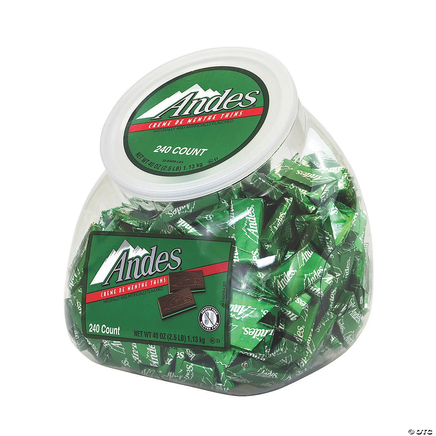 The number one after-dinner mint, Andes Creme de Menthe delivers a smooth blend of mint and chocolate flavors. The iconic, rectangular three-layered candy became instantly popular after its 1950 launch, and it has remained an American favorite ever since. The individually foil-wrapped, bite-sized pieces enhance any social gathering or event, yet remain equally popular as self-indulgent treats. With 240 pieces in this bowl, there will be plenty for everyone. Candy is non-returnable. For more information, visit our “Return Policy” page located on our website.Special Shipping Information: This item ships separately from other items in your order. This item cannot ship to a P.O. Box. This item may be subject to additional processing days. ITEM IS NOT ELIGIBLE FOR EXPEDITED SHIPPING