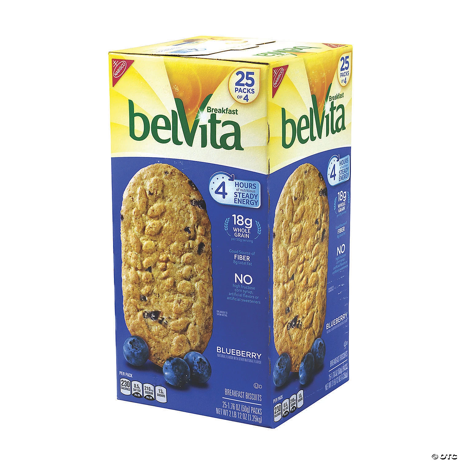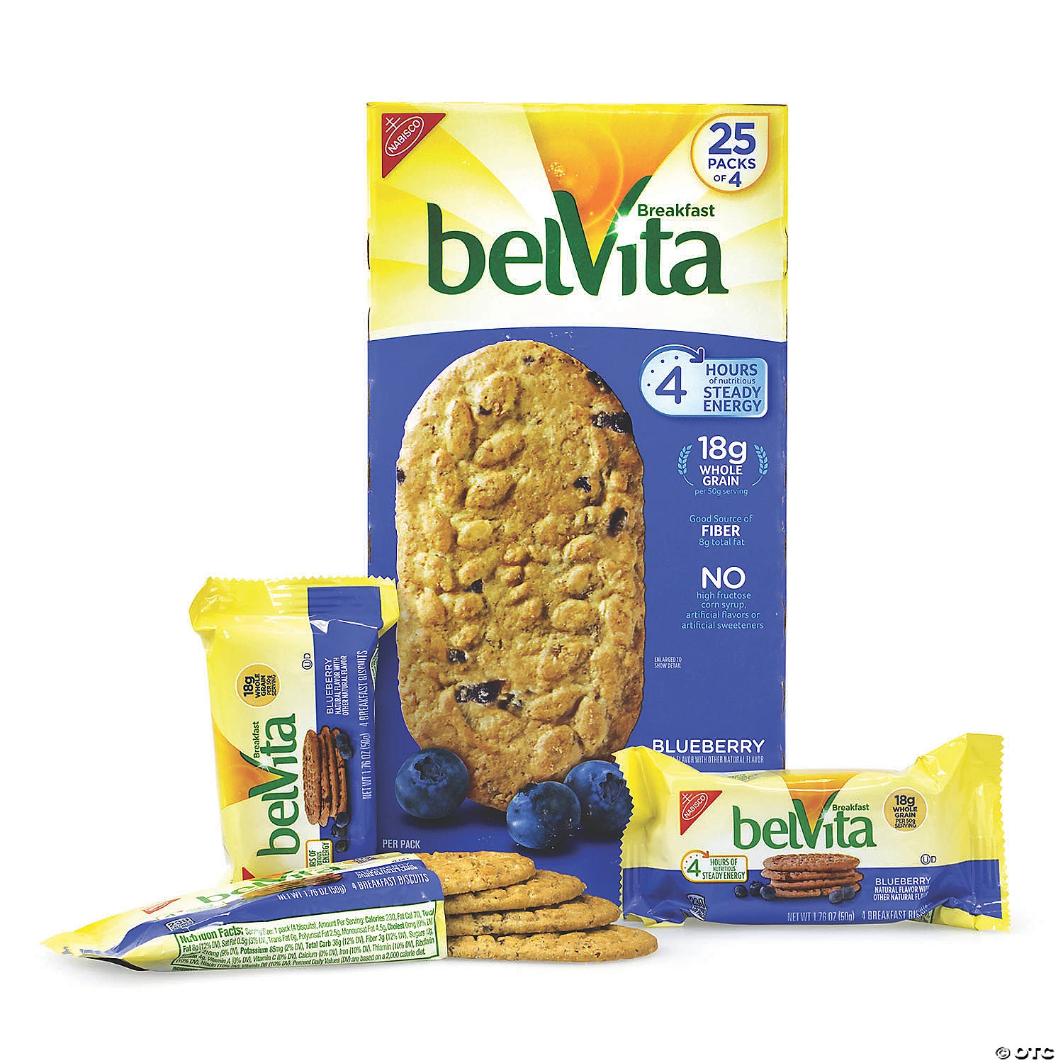 Crunch into the delicious natural blueberry taste of these Belvita Blueberry Breakfast Biscuits. Made with whole grain and natural flavors, each package contains 4 crunchy breakfast biscuits. Not only are these breakfast biscuits delicious, but they’re also packed with all natural energy. Great with your morning coffee or tea at the office, Belvita Breakfast Biscuits are packed with energy to help you get through the day; whether you’re at the office or off doing errands.