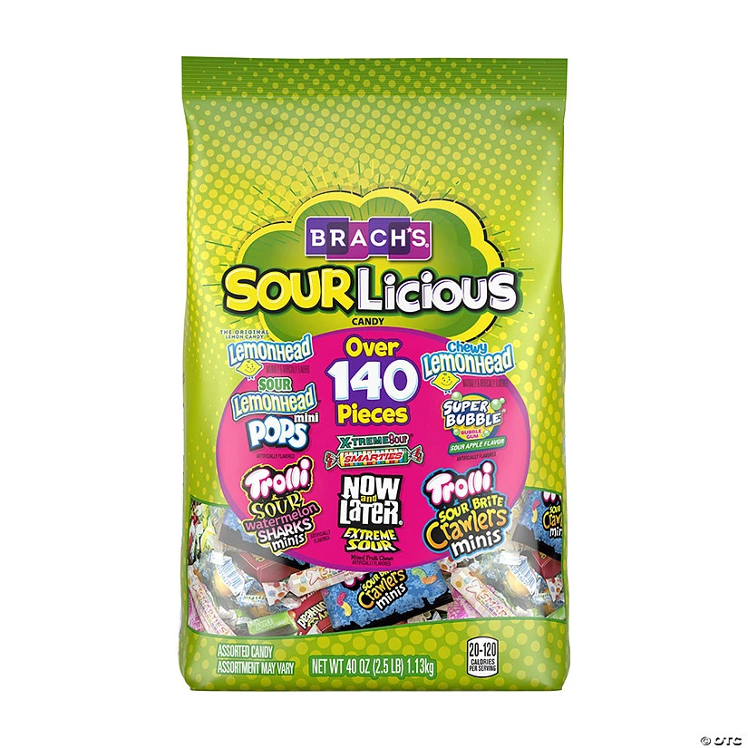 Sour lovers, rejoice! This mix of classic Brach’s sour candies, including Now and Laters Extreme Sour, Trolli Sour Watermelon Sharks Minis, Sour Lemonheads and many more, will make all your sour dreams come true. Be the Halloween hero on your street by giving these to trick-or-treaters or stock up for your class Halloween party. Assorted flavors. Individually wrapped. (appox. 140 pcs. per unit) Total wt., 40 oz.• Candy is non-returnable. For more information, visit our “Return Policy” page located on our website.• Made in the USA, Important Country of Origin Information: For certain items sold by Fun Express on our Web or Mobile sites, country of origin information can change and what is displayed may not be accurate or consistent with manufacturer information. For up to date country of origin information, it is recommended that you rely on product packaging or other manufacturer information. • Ingredient, nutrition, allergen and other product information are provided on our Web and Mobile sites for reference purpose only, without warranty or representation as to accuracy. Manufacturers adjust their labeling regularly and are solely responsible for the accuracy of the information. For general questions concerning these items, please contact our customer service at 800-228-0475.