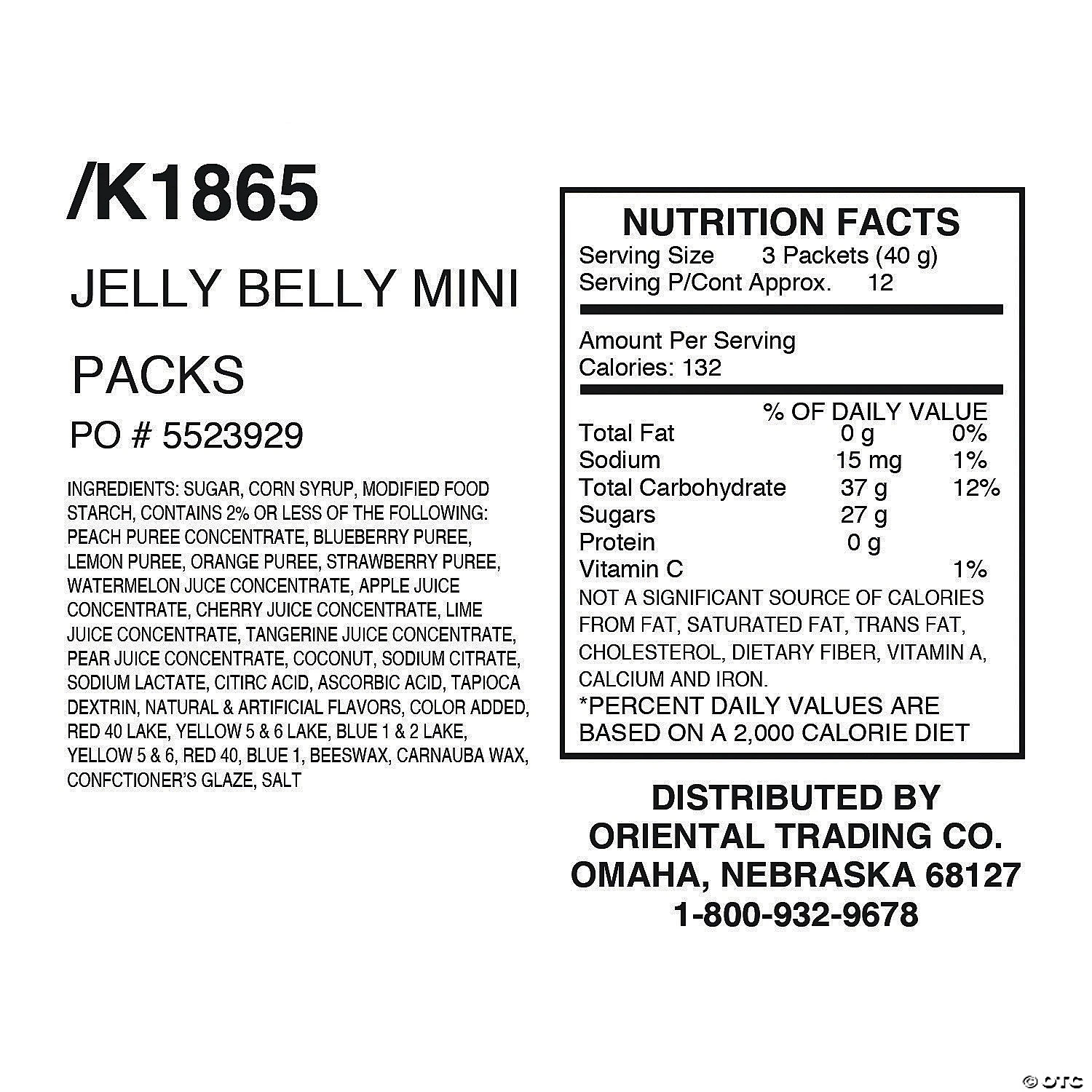 Add jelly beans to your celebration! Everybody loves finding a little candy in their goody bags. These classic Jelly Belly® Mini packs make wonderful Easter basket fillers, stocking stuffers and birthday party favors. Buying classic Jelly Belly beans in bulk means that you’ll have more than enough for every occasion and for adults and kids alike! Assorted fruit flavors. (Approx. 11 pcs. per pack, 300 packs per unit) Total wt., 6 lb. 9 oz. © Jelly Belly Candy Company• Dairy-free.• Fat-free.• Gluten-free.• Kosher (Pareve). • Nut-free. • Candy is non-returnable. For more information, visit our “Return Policy” page located on our website.• Made in the USA, Important Country of Origin Information: For certain items sold by OTC on our Web or Mobile sites, country of origin information can change and what is displayed may not be accurate or consistent with manufacturer information. For up to date country of origin information, it is recommended that you rely on product packaging or other manufacturer information.• Ingredient, nutrition, allergen and other product information are provided on our Web and Mobile sites for reference purpose only, without warranty or representation as to accuracy. Manufacturers adjust their labeling regularly and are solely responsible for the accuracy of the information. For general questions concerning these items, please contact our customer service at 800-228-0475.