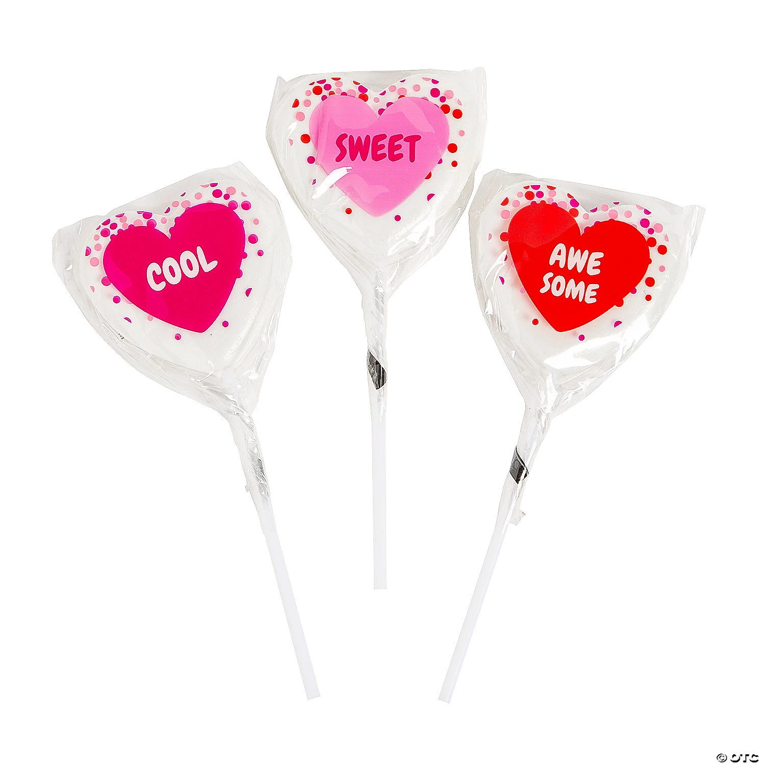 Looking for a unique, yet classic touch to your Valentine’s Day candy? Whether it’s for a classroom exchange, a Valentine’s Day party, or the classic desk candy storage, this set of suckers is perfect! Each sucker has a wrapper that features a classic conversation heart saying or word, along with designs of confetti or sprinkles! Cherry flavor. Individually wrapped. Each 1 3/4″ lollipop is on a 4″ plastic stick. Total wt., 7 oz. © OTC• Candy is non-returnable. For more information, visit our “Return Policy” page located on our website.• Ingredient, nutrition, allergen and other product information are provided on our Web and Mobile sites for reference purpose only, without warranty or representation as to accuracy. Manufacturers adjust their labeling regularly and are solely responsible for the accuracy of the information. For general questions concerning these items, please contact our customer service at 800-228-0475.