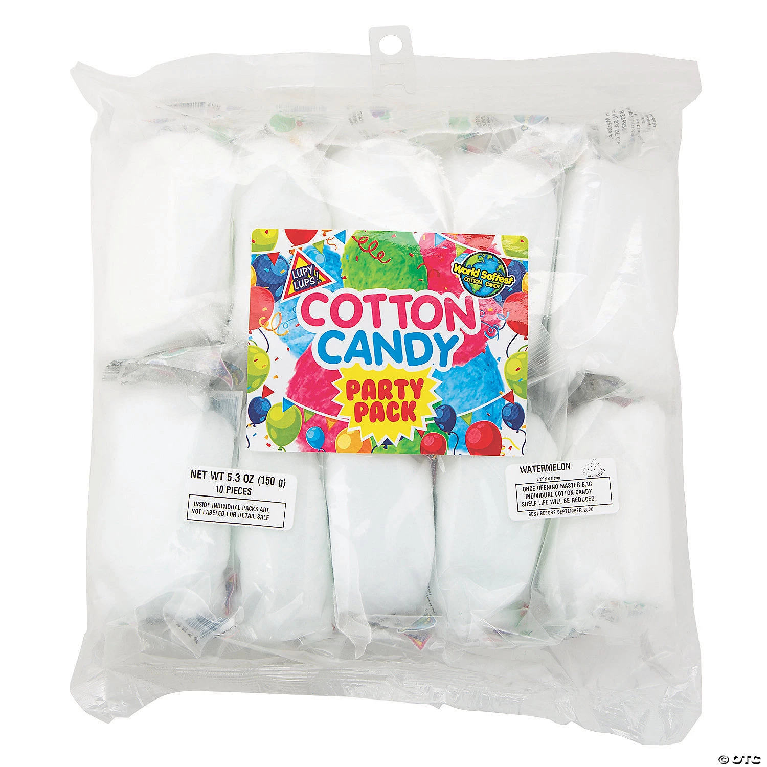 Add yummy fluff to your wedding reception with these cotton candy favor packs! An excellent addition to your wedding favors, these delicious cotton candy packs are sure to be a hit with your guests and wedding party alike. Match your wedding colors and get ready for your guests to be wishing for more! Stock up on more amazing wedding supplies elsewhere on this website. Watermelon flavor. Individually wrapped. (10 pcs. per unit) Total wt., 10 oz.• Ingredient, nutrition, allergen and other product information are provided on our Web and Mobile sites for reference purpose only, without warranty or representation as to accuracy. Manufacturers adjust their labeling regularly and are solely responsible for the accuracy of the information. For general questions concerning these items, please contact our customer service at 800-228-0475.