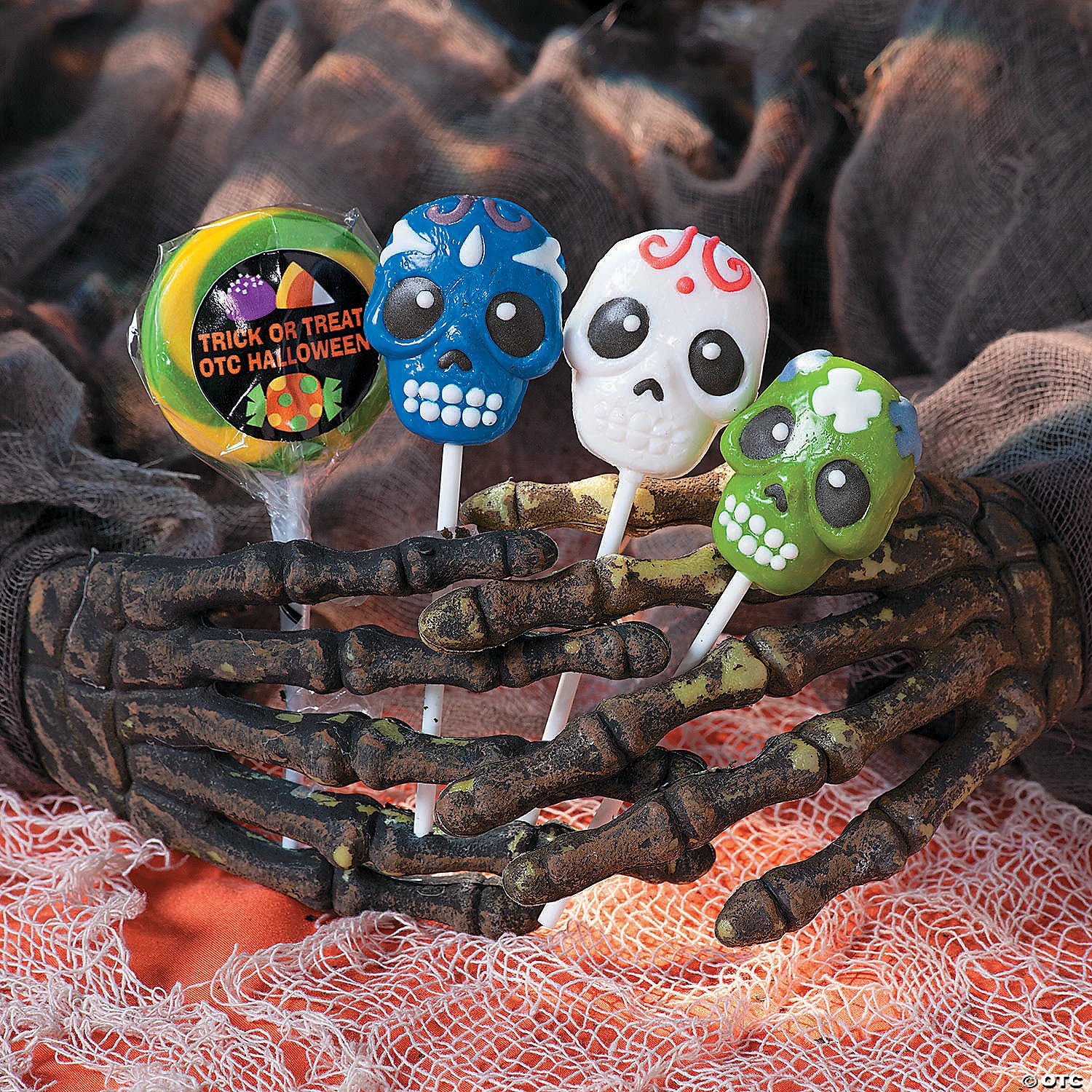 Your trick or treaters will lose their heads over these Day of the Dead lollipops. These Halloween treats make great favors for Halloween parties, Day of the Dead celebrations or any time you need silly skull-shaped sweets. Each 1 3/4″ pop comes on a 4″ plastic stick. Includes blueberry, cherry and mixed fruit flavors. Individually wrapped. Fat-free. Total wt., 7 oz. © OTC• Candy is non-returnable. For more information, visit our “Return Policy” page located on our website. • Ingredient, nutrition, allergen and other product information are provided on our Web and Mobile sites for reference purpose only, without warranty or representation as to accuracy. Manufacturers adjust their labeling regularly and are solely responsible for the accuracy of the information. For general questions concerning these items, please contact our customer service at 800-228-0475.