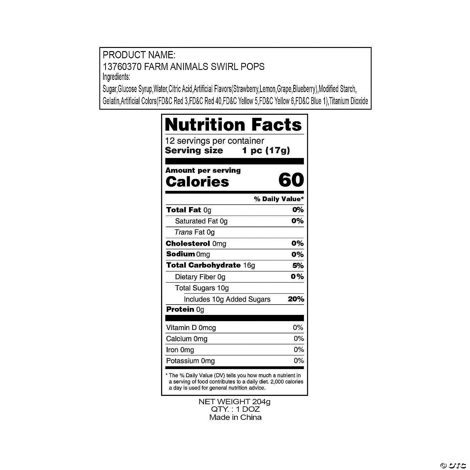 Planning a farm or barnyard party theme? Add these Farm Animal Swirl Pops to party favor bags or leave them out in a candy buffet for party guests to grab! Includes 2″ pops on 4″ plastic sticks. Strawberry, lemon, grape and blueberry flavors. Individually wrapped. Fat-free. Total wt., 7 oz. Candy is non-returnable. For more information, visit our “Return Policy” page located on our website. © OTC