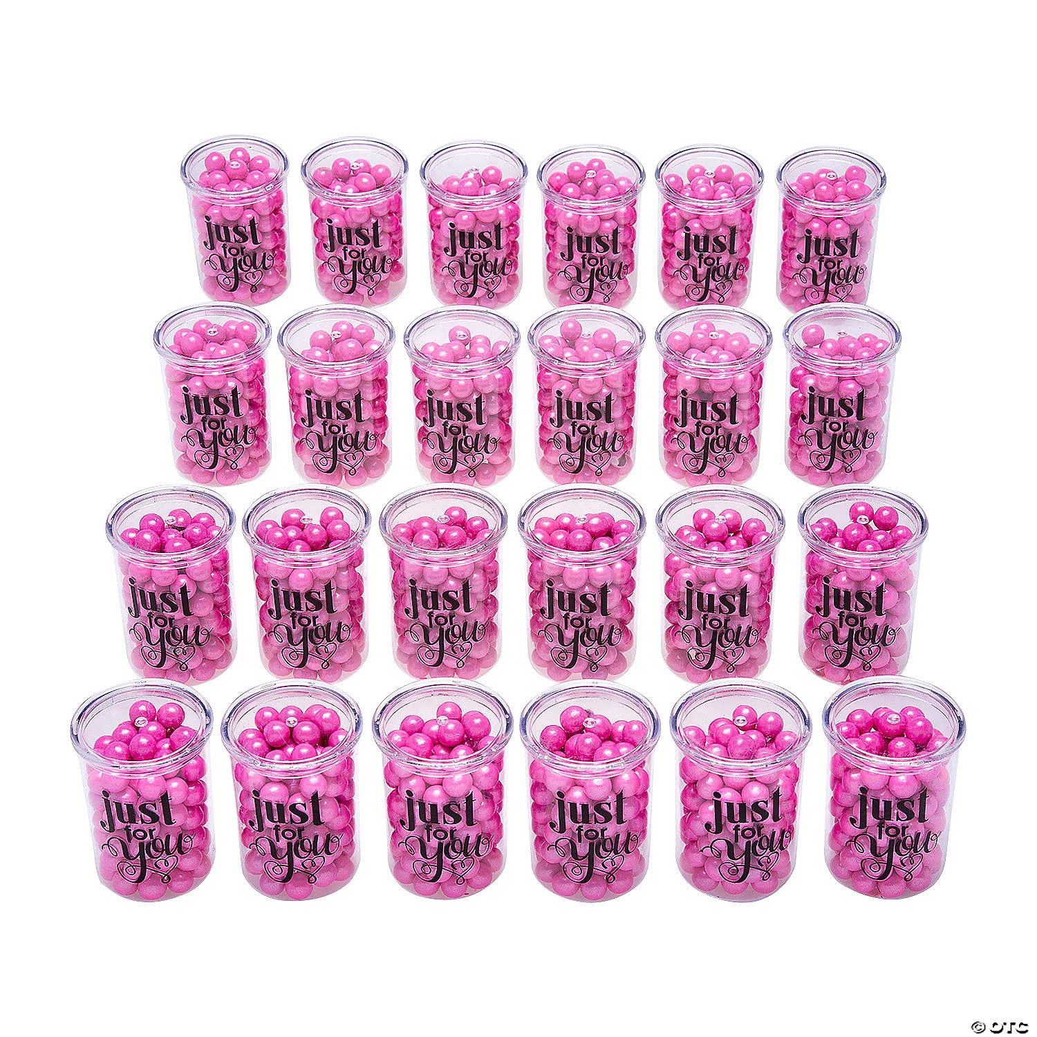 Share the love on your wedding day when you hand out these tasty wedding favors! The adorable jars include a heartfelt message of, “Just for you” and a lid to keep the candies fresh. Simply fill the jars with the chocolates and set them out at your wedding reception place settings for a sweet treat guests can enjoy immediately or take home for later. Talk about a sweet addition to your wedding supplies!Includes:• 24 Plastic Just for You Favor Containers (Includes lids. 3″ x 2″ diam.)• 3 Sixlets® Sparkling Bright Pink Chocolate Candies bags (Approx. 1184 pcs. per bag. Total wt., 2 lbs. per bag.)• Candy is non-returnable. For more information, visit our “Return Policy” page located on our website.• Ingredient, nutrition, allergen and other product information are provided on our Web and Mobile sites for reference purpose only, without warranty or representation as to accuracy. Manufacturers adjust their labeling regularly and are solely responsible for the accuracy of the information. For general questions concerning these items, please contact our customer service at 800-228-0475.