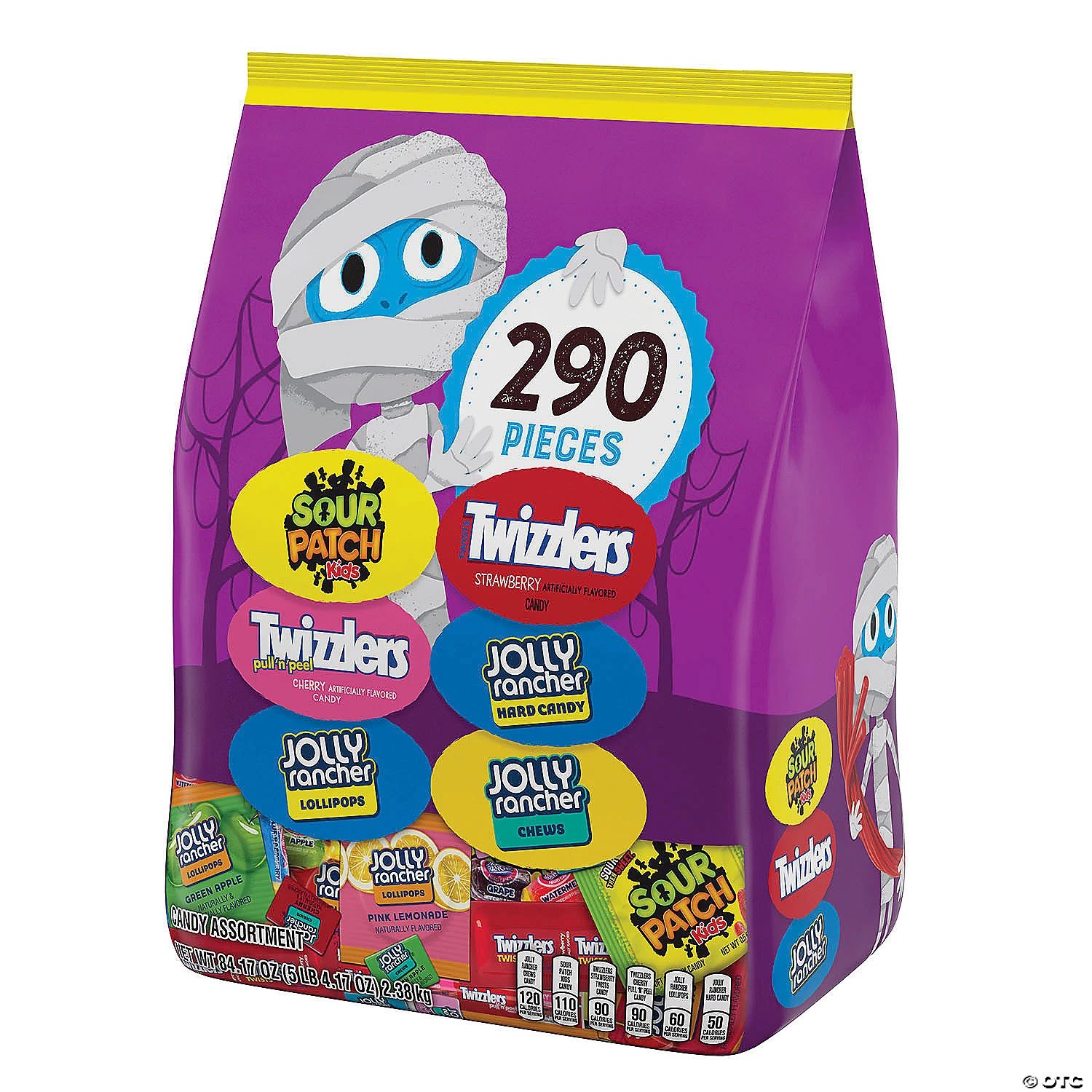 Go for fruity flavors this Halloween with this huge bag of Halloween candy! Perfect for handing out to trick-or-treaters or using as Halloween giveaways, these name-brand treats will vanish quickly. Includes Sour Patch Kids, Cherry Twizzlers® Pull ’N Peel, Jolly Rancher® Chews, Strawberry Twizzlers®, Jolly Rancher® Lollipops and Jolly Rancher® Hard Candies. (330 pcs. per unit) Total wt., 97.3 oz. Kosher. © The Hershey Company• Made in the USA. Important Country of Origin Information: For certain items sold by OTC on our Web or Mobile sites, country of origin information can change and what is displayed may not be accurate or consistent with manufacturer information. For up to date country of origin information, it is recommended that you rely on product packaging or other manufacturer information.• Ingredient, nutrition, allergen and other product information are provided on our Web and Mobile sites for reference purpose only, without warranty or representation as to accuracy. Manufacturers adjust their labeling regularly and are solely responsible for the accuracy of the information. For general questions concerning these items, please contact our customer service at 800-228-0475.