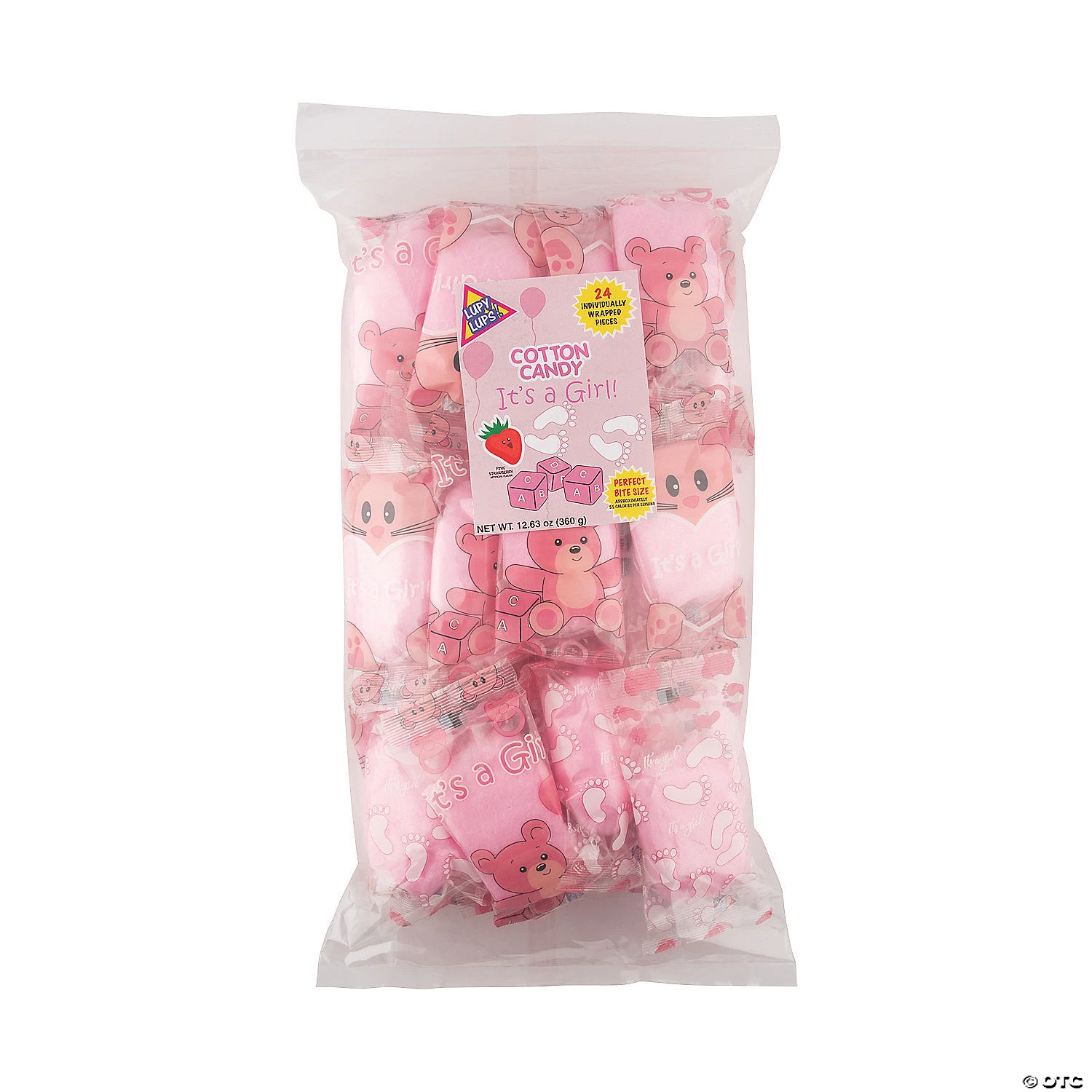 How better to celebrate a sweet baby girl than with a sweet treat? The perfect baby shower favor or prize, this cotton candy will be a hit! Use this for a surprising gender reveal or to announce the arrival of a baby girl. Allergies? No worries! This cotton candy is dairy free, gluten free, fat free and nut free! (2 dozen per unit) Each pack is 1 oz. Total wt., 24 oz. Strawberry flavor. Fat-free.• Candy is non-returnable. For more information, visit our “Return Policy” page located on our website.• Ingredient, nutrition, allergen and other product information are provided on our Web and Mobile sites for reference purpose only, without warranty or representation as to accuracy. Manufacturers adjust their labeling regularly and are solely responsible for the accuracy of the information. For general questions concerning these items, please contact our customer service at 800-228-0475.
