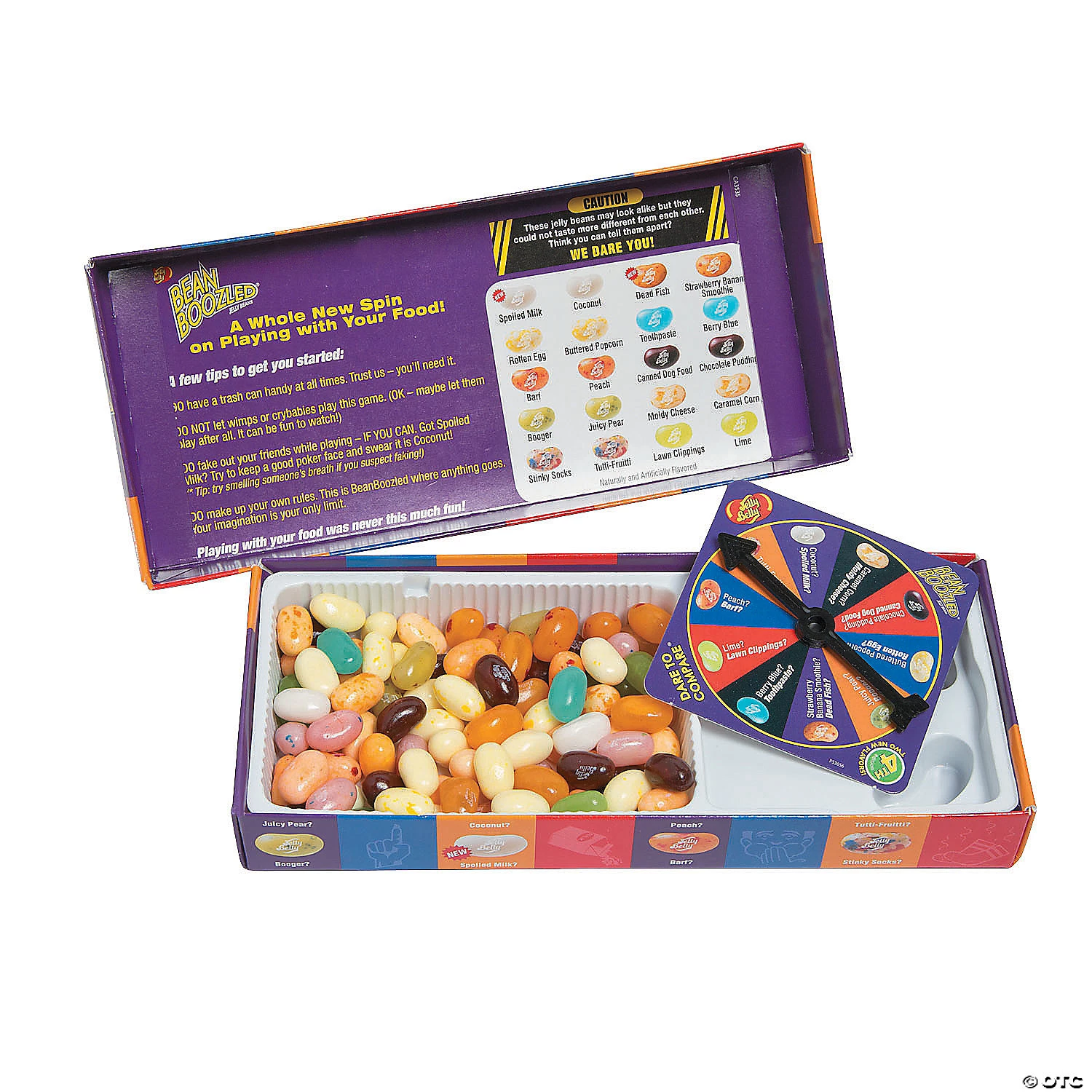 The popular candy game from Jelly Belly®, this latest edition of Bean Boozled® is fun for prizes, kids’ parties, adult gatherings and competitions.• Naturally and artificially flavored. • Size: Box, 7 1/4″ x 3 1/2″ x 1″.• Total wt., 3 oz.• Spinner included.