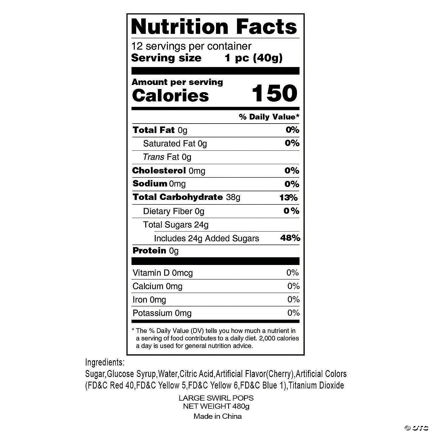 A delight for the eyes as well as the taste buds, these Large Swirl Lollipops are classic candy treats that kids love. Use them for Easter candy, Halloween party treats, Trunk-or-Treat or anytime you need a sweet treat for kids. With a hypnotizing rainbow swirl and an irresistible cherry flavor, these suckers are always welcome additions to any party’s sweet display or candy buffet. • Cherry flavored.• Individually wrapped.• Includes 2 3/4″ suckers on 6″ plastic sticks.• Total wt., 1 lb. • Assortment may vary. • Fat-free. • Candy is non-returnable. For more information, visit our “Return Policy” page located on our website.• Ingredient, nutrition, allergen and other product information are provided on our Web and Mobile sites for reference purpose only, without warranty or representation as to accuracy. Manufacturers adjust their labeling regularly and are solely responsible for the accuracy of the information. For general questions concerning these items, please contact our customer service at 800-228-0475.