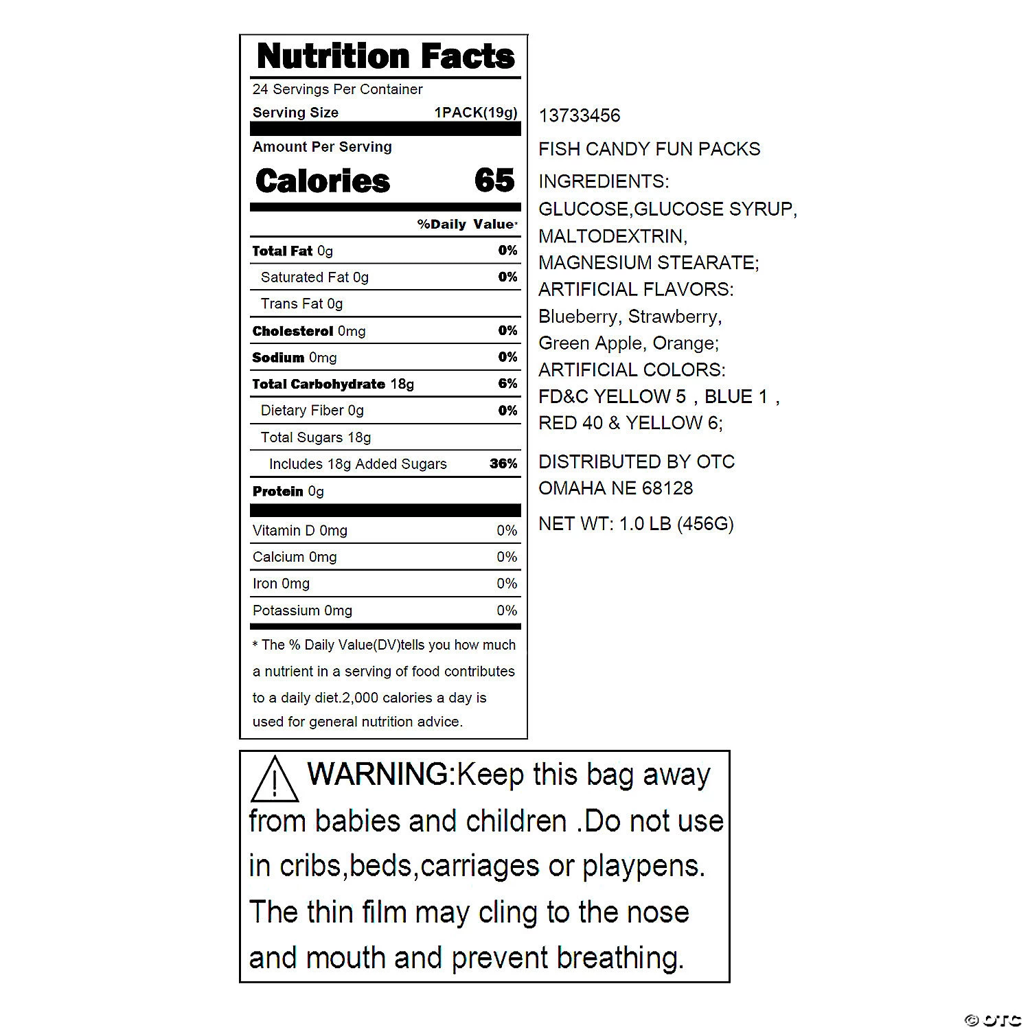 These fish will make a splash at your luau or little fisherman birthday party! Give them out to your guests as party favors for a burst of fruit-flavored sweetness. These treats are also fun in candy buffets, or hand them out on Halloween to all the little trick-or-treaters that swim your way. Orange, blueberry, strawberry and sour apple flavors. (Approx. 50 pcs. per pkg., 24 pkgs. per unit) Fat-free. Total wt., 1 lb. Candy is non-returnable. For more information, visit our “Return Policy” page located on our website. © OTC
