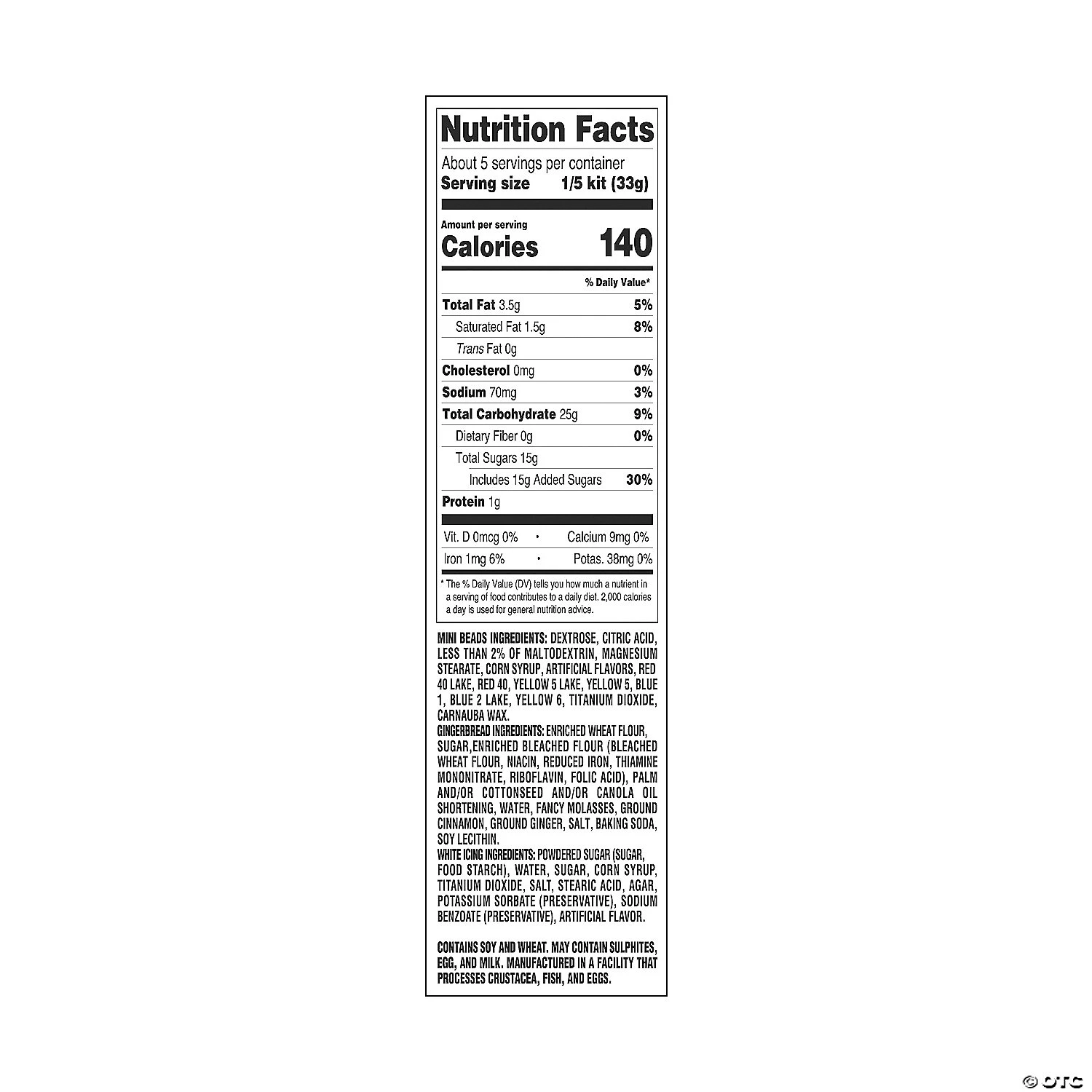 This fun decorating kit adds more time to family time and less dishes to the kitchen! Kids will have a blast using their imagination and assembling the mini gingerbread house with frosting icicles and candy Christmas lights. It’s a great Christmas family tradition or winter activity to do at home. Don’t be surprised if a few of the candy beads go missing! Includes gingerbread panels, pre-mixed icing and mini candy beads. 5″ x 7″ Total wt., 6.75 oz. • Edibles are non-returnable. For more information, visit our “Return Policy” page located on our website. • Made in the USA. Important Country of Origin Information: For certain items sold by OTC on our Web or Mobile sites, country of origin information can change and what is displayed may not be accurate or consistent with manufacturer information. For up-to-date country of origin information, it is recommended that you rely on product packaging or other manufacturer information.• Ingredient, nutrition, allergen and other product information are provided on our Web and Mobile sites for reference purpose only, without warranty or representation as to accuracy. Manufacturers adjust their labeling regularly and are solely responsible for the accuracy of the information. For general questions concerning these items, please contact our customer service at 800-228-0475.