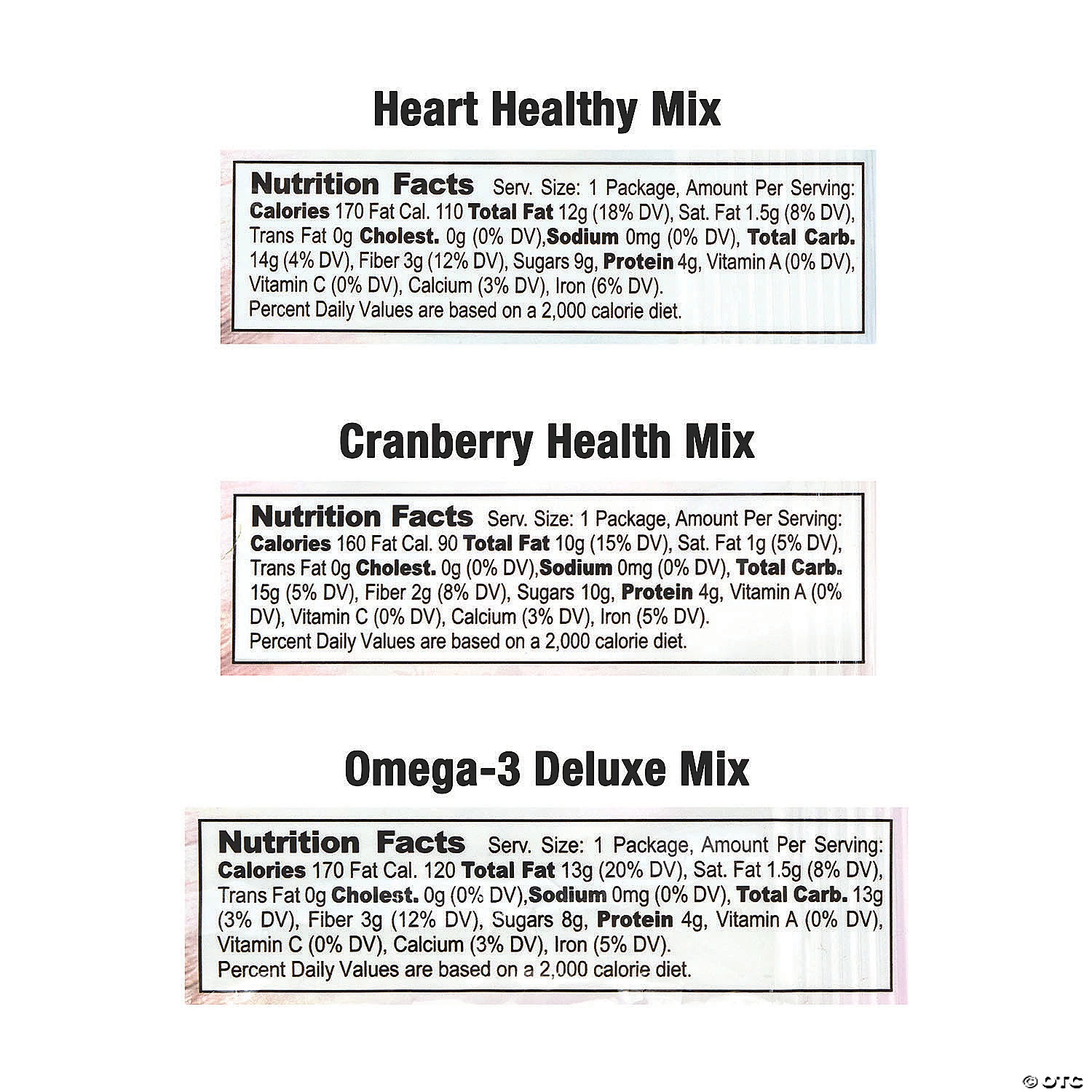 If you’re looking for a healthy snack, look no further than this Nature’s Garden Healthy Snack Mix Variety pack. Three great-tasting trail mixes like Heart Healthy, Omega-3 Deluxe, and Cranberry Health, you can crunch your way through these delicious mixes and get natural vitamins and protein, too. With 50 1.2-Ounce pouches, this Nature’s Garden Healthy Snack Mix Variety assortment is perfect for vending machines, packing with a lunch, or grabbing if you’re on the go. Edibles are non-returnable. For more information, visit our “Return Policy” page located on our website.Special Shipping Information: This item ships separately from other items in your order. This item cannot ship to a P.O. Box. This item may be subject to additional processing days. ITEM IS NOT ELIGIBLE FOR EXPEDITED SHIPPING
