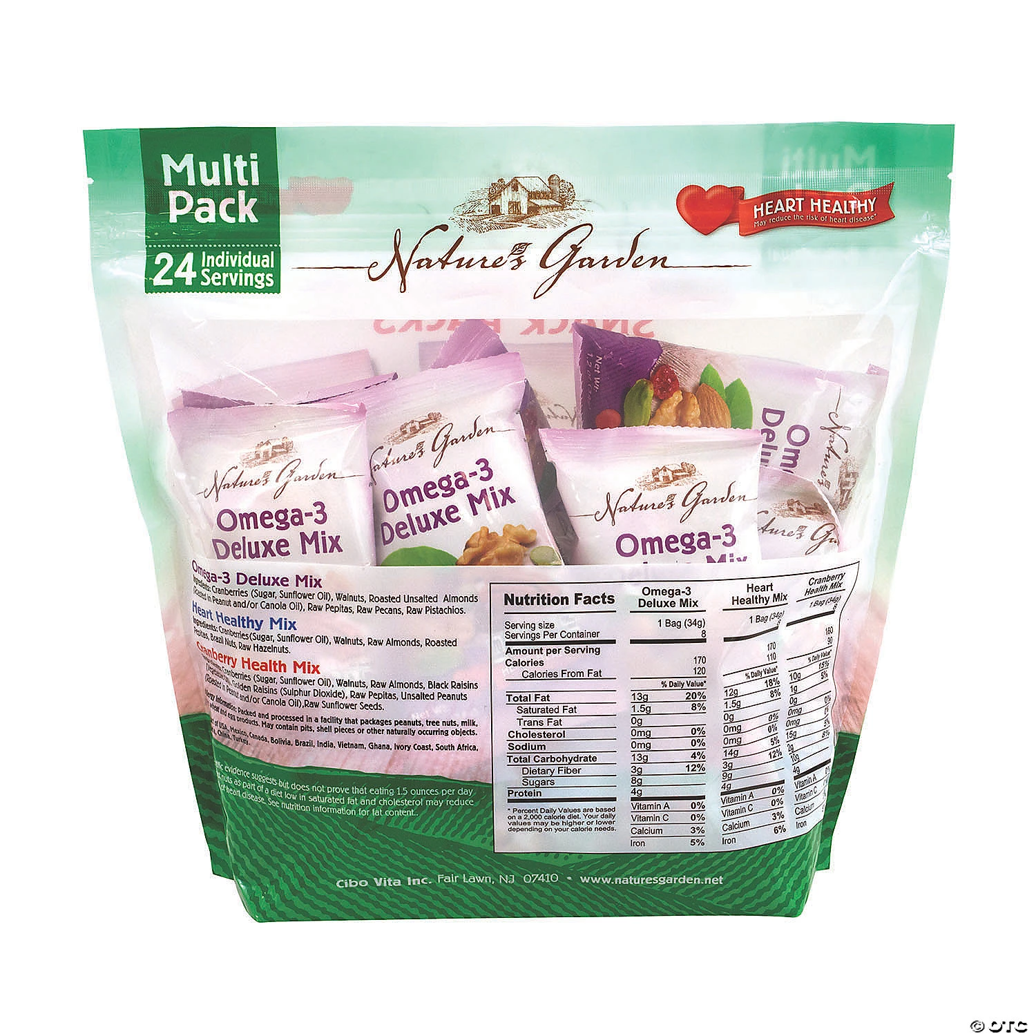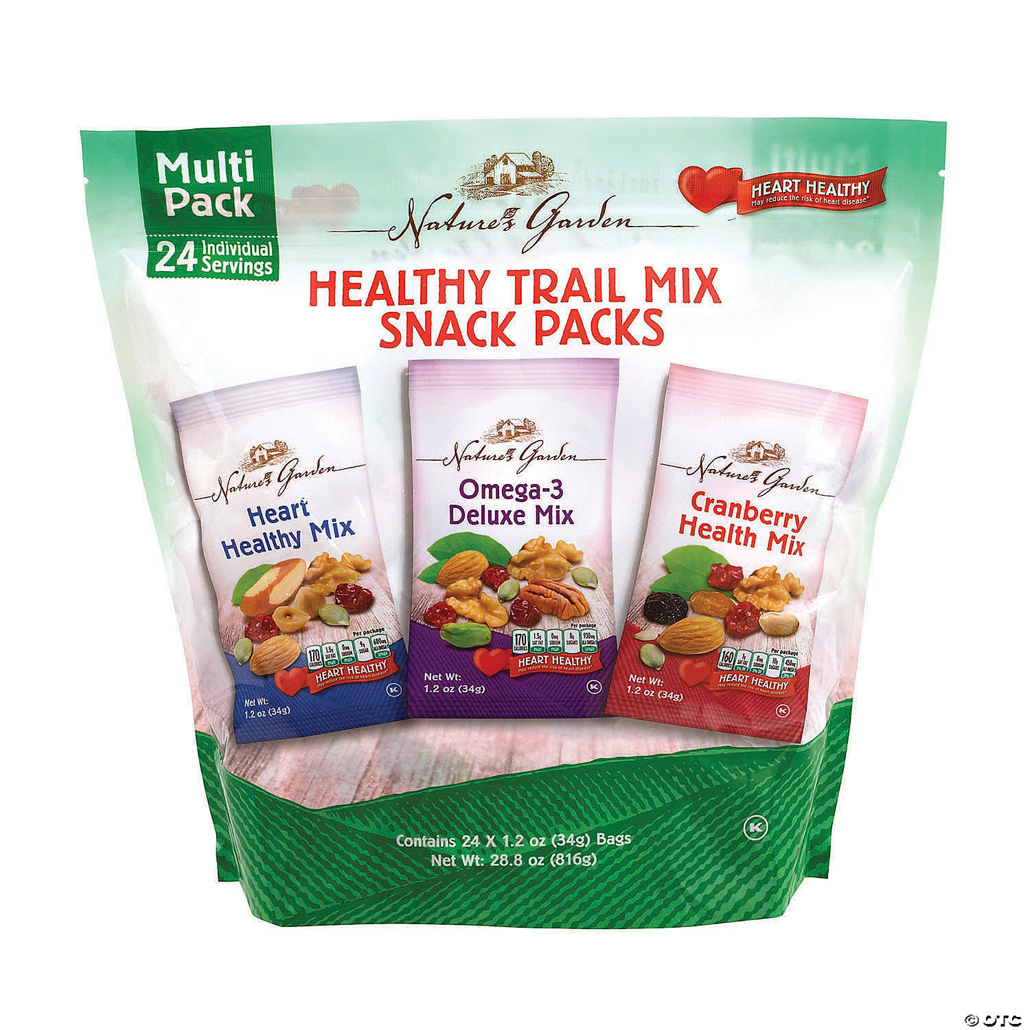 If you’re looking for a healthy snack, look no further than this Nature’s Garden Healthy Trail Mix Snack Packs pouch. With three great-tasting trail mixes like Heart Healthy, Omega-3 Deluxe, and Cranberry Health, you can crunch your way through these delicious mixes and get natural vitamins and protein, too. With 24 1.2-Ounce pouches, this Healthy Trail Mix Snack Pack assortment is perfect for vending machines, packing with a lunch, or grabbing if you’re on the go.Special Shipping Information: This item ships separately from other items in your order. This item cannot ship to a P.O. Box. This item may be subject to additional processing days. ITEM IS NOT ELIGIBLE FOR EXPEDITED SHIPPING