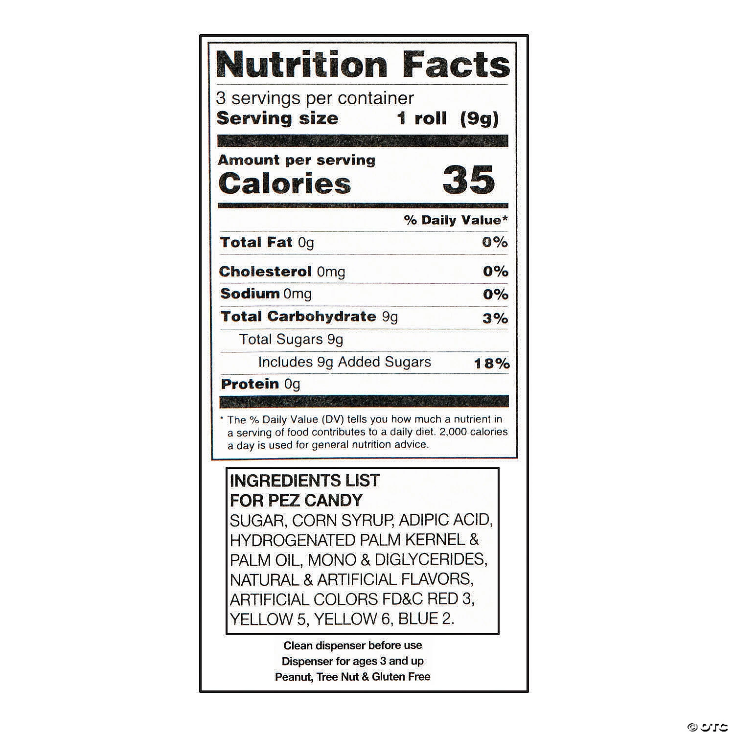 Collect them all! These Nintendo™ PEZ® Dispensers make fantastic party favors and giveaways, and this blister pack is perfect for placing in a toy or candy aisle. Which one do you want: Mario, Princess Peach, Donkey Kong or Yoshi? Each plastic dispenser includes 3 rolls of assorted fruit flavor candy. 4 1/2″; box, 6 3/4″ x 10 1/2″ x 5 1/2″. Total wt., 7 oz. • Fat-free.• Dairy-free.• Gluten-free• Nut-free.• Made in the USA, Important Country of Origin Information: For certain items sold by OTC on our Web or Mobile sites, country of origin information can change and what is displayed may not be accurate or consistent with manufacturer information. For up to date country of origin information, it is recommended that you rely on product packaging or other manufacturer information.• Nut-free.• Ingredient, nutrition, allergen and other product information are provided on our Web and Mobile sites for reference purpose only, without warranty or representation as to accuracy. Manufacturers adjust their labeling regularly and are solely responsible for the accuracy of the information. For general questions concerning these items, please contact our customer service at 800-228-0475.