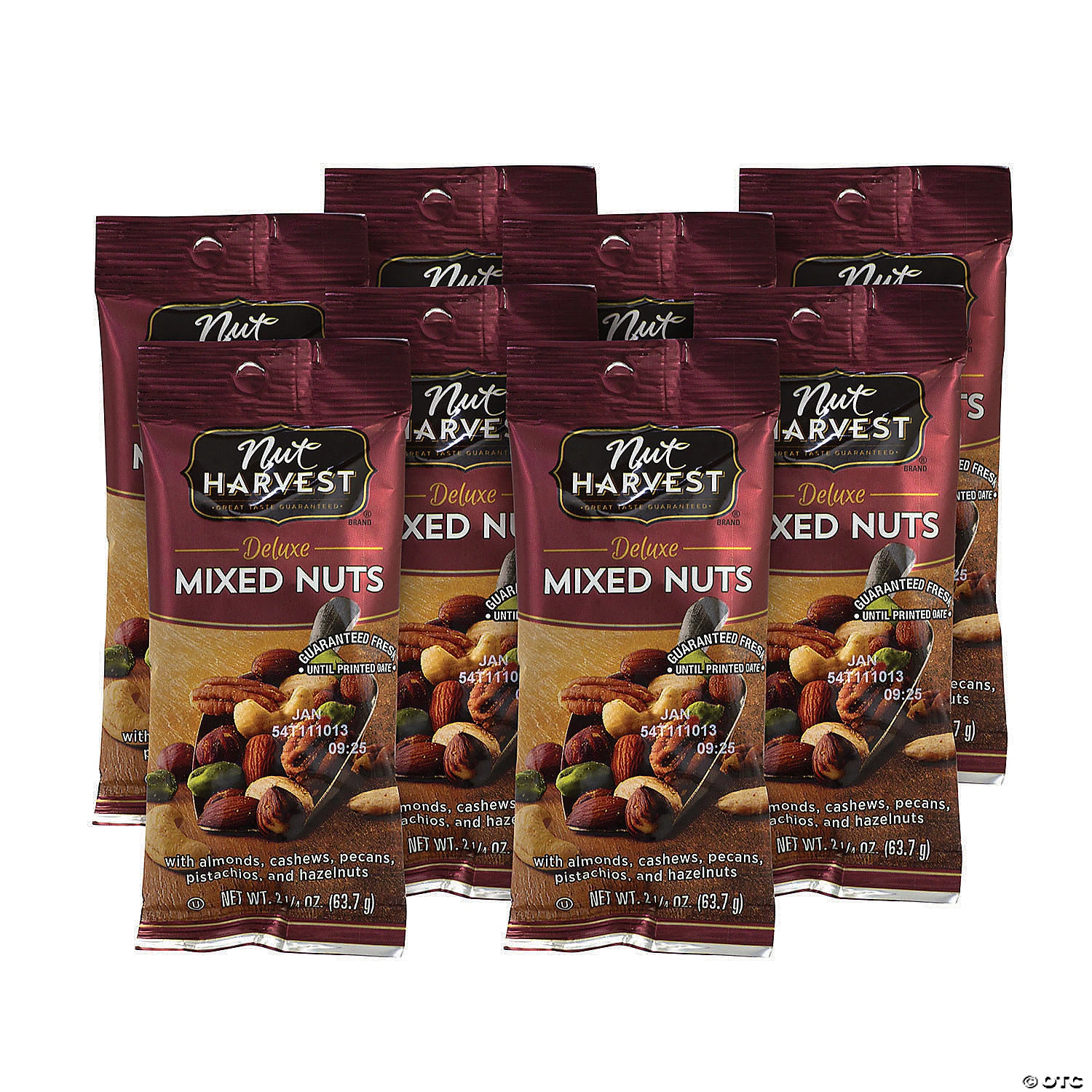 Grab a pouch of Nut Harvest Deluxe Mixed Nuts , 2.25 oz, 8 Pack and crunch your way through a hearty and crunchy mixture. Packed with Cashews, Almonds, Pecans, Pistachios and Hazelnuts, this Nut Harvest Mix is a great source of healthy, nutritious snacks. Nut Harvest Deluxe Mixed Nuts , 2.25 oz, 8 Pack is great for packing in with your lunch at the office, grabbing on-the-go, or eating in between meetings!Edibles are non-returnable. For more information, visit our “Return Policy” page located on our website.Special Shipping Information: This item ships separately from other items in your order. This item cannot ship to a P.O. Box. This item may be subject to additional processing days. ITEM IS NOT ELIGIBLE FOR EXPEDITED SHIPPING