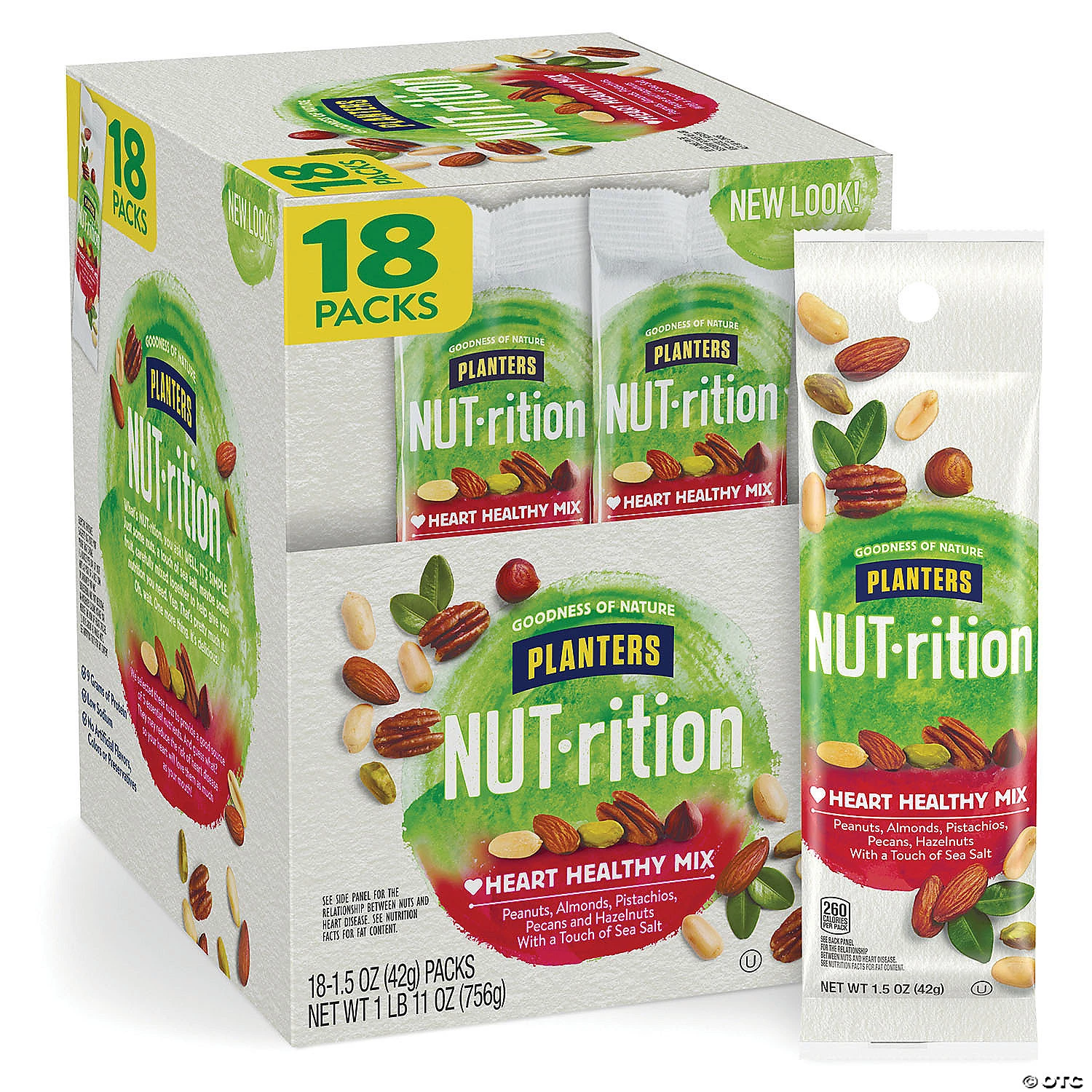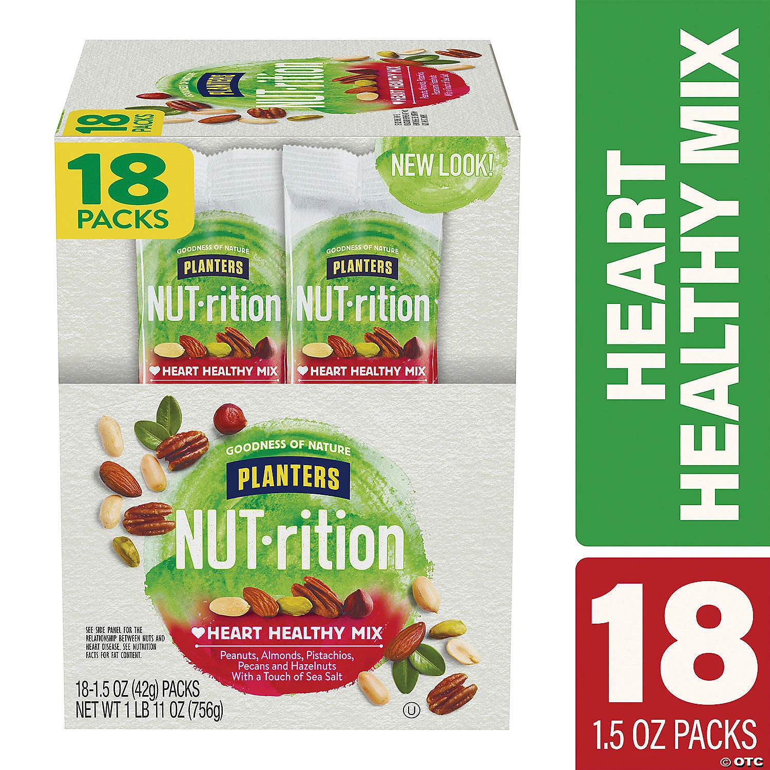 Crunch your way through this Planters Nut-Rition Heart Healthy Mix and enjoy the great flavors of Peanuts, Almonds, Pistachios, Pecans, and Hazelnuts. With 9-Grams of Protein and 6 Vitamins and Minerals, this nut mix may reduce the risk of heart disease. With 18 individual sized pouches, you’ll have plenty of crunchy nuts to enjoy when you’re on the go, or need an afternoon pick me up at your desk or doing errands. Planters Nut-Rition Heart Healthy Mix is the perfect combination of delicious and healthy nuts! Edibles are non-returnable. For more information, visit our “Return Policy” page located on our website.