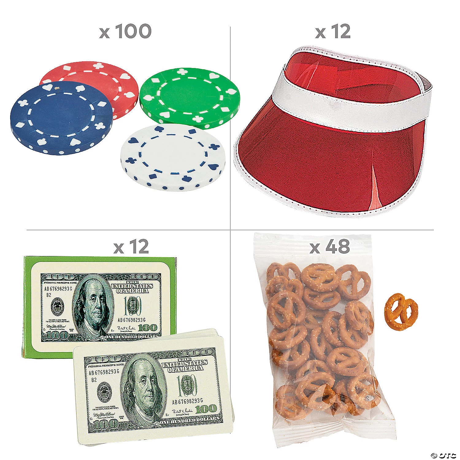 Planning an adult game night and not sure where to start? Grab this kit and have the items you need to throw the perfect poker party. Your poker night setup is easy with this awesome game night kit. Your guests will be delighted to get together and make some fun memories. (172 pcs. per unit) Assortment may vary.