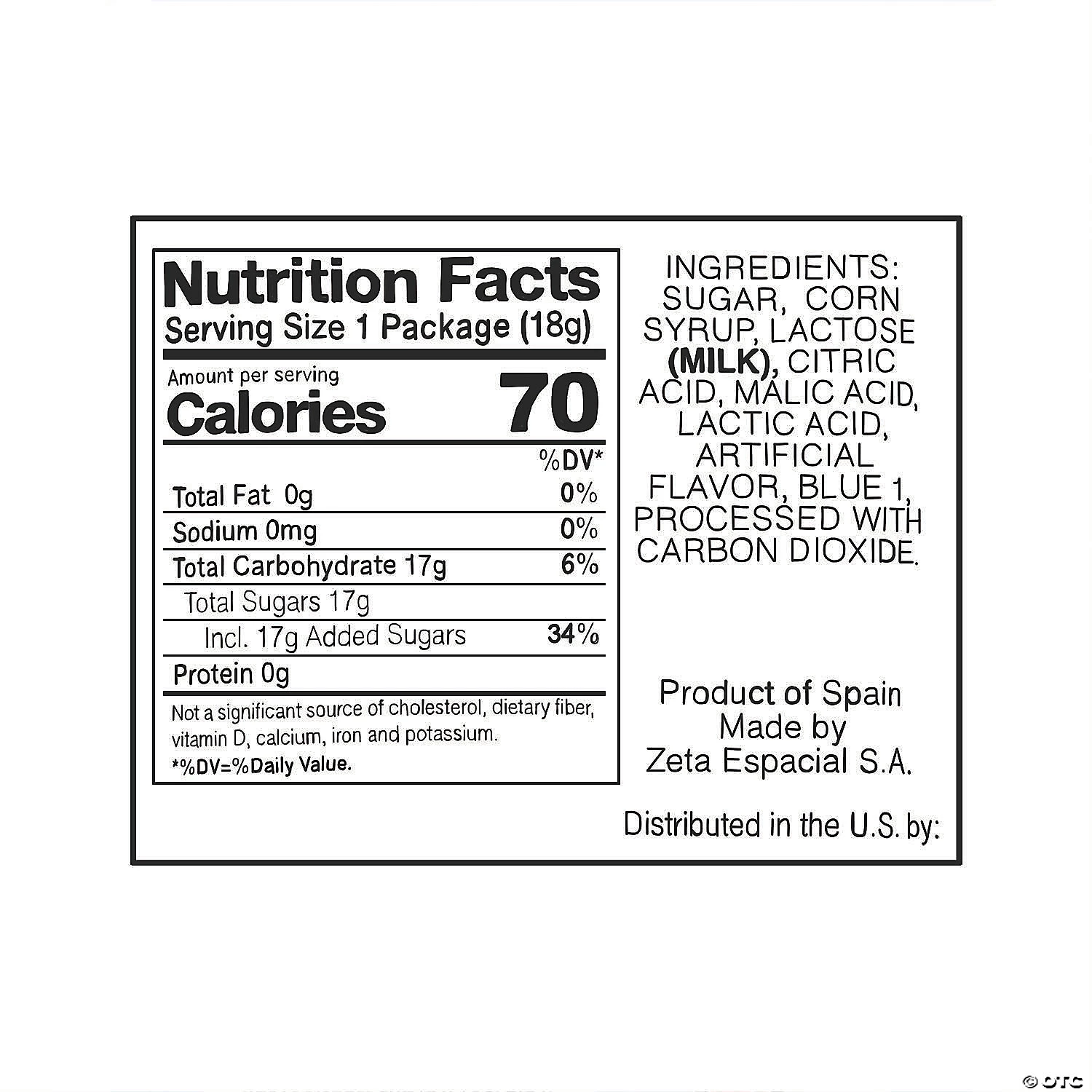 Pop Rocks® Blue Raspberry Dips are awesome birthday party favors and holiday giveaways. Fun candy packs that really pack a punch flavor are always popular with kids. They’re also great for Halloween, Christmas, Easter celebrations in the classroom. Our online candy shop gives you more bang for your buck. Add more flavors to your cart today for less. Blue raspberry flavor. (18 pkgs. per unit) Total wt., 11 oz. Fat-free.• Candy is non-returnable. For more information, visit our “Return Policy” page located on our website.• Ingredient, nutrition, allergen and other product information are provided on our Web and Mobile sites for reference purpose only, without warranty or representation as to accuracy. Manufacturers adjust their labeling regularly and are solely responsible for the accuracy of the information. For general questions concerning these items, please contact our customer service at 800-228-0475.