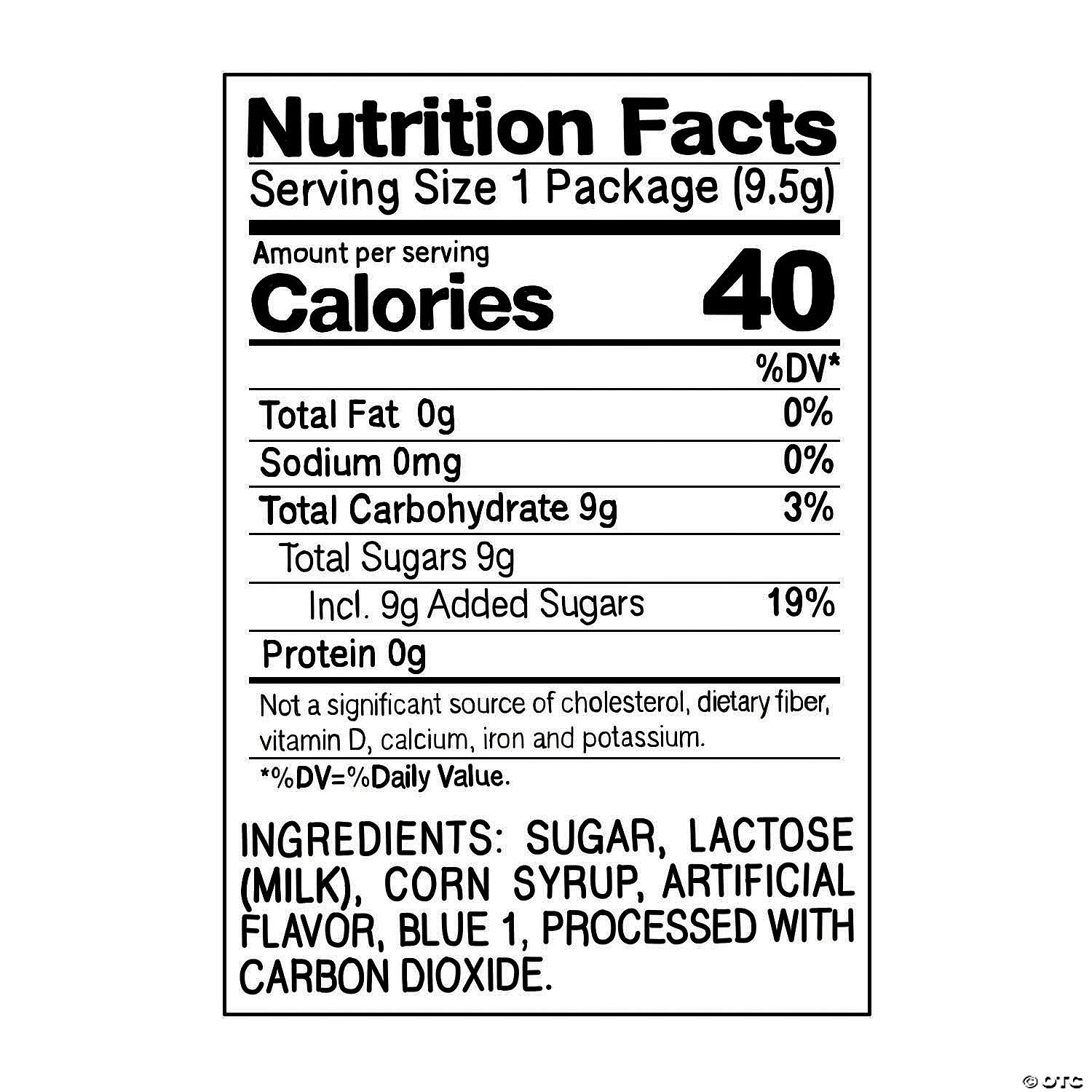 Add a little bit of blue raspberry to your bash! Just what you need to sweeten up your selection of party favors, pop rocks like this are filled with sweet flavor and oh-so-fun to eat. Whether you’re looking for a lip-smacking way to fill goody bags or tasty treats to add to any celebration, Pop Rocks are a favorite across generations. Blue raspberry flavor. (24 pcs. per unit) Total wt., 7 oz. Fat-free.• Candy is non-returnable. For more information, visit our “Return Policy” page located on our website.• Ingredient, nutrition, allergen and other product information are provided on our Web and Mobile sites for reference purpose only, without warranty or representation as to accuracy. Manufacturers adjust their labeling regularly and are solely responsible for the accuracy of the information. For general questions concerning these items, please contact our customer service at 800-228-0475.