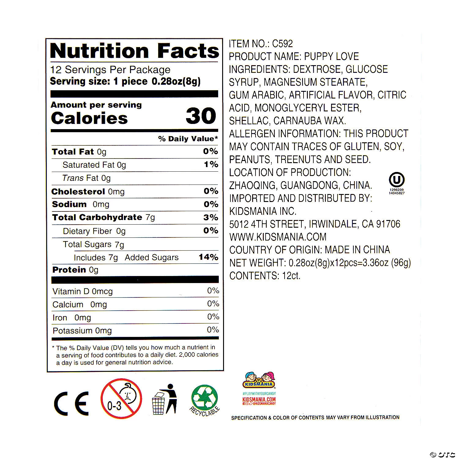 Once kids get their hands on these paw-sitively adorable birthday party favors, they’ll love collecting them all! Each crate comes with a tiny puppy figure and yummy bone-shaped candy treats! Kids will have a blast playing with the pups and devouring the candy. Hand these out as classroom rewards, carnival prizes and other fun giveaways! (12 pcs. per unit) Display box, 4 1/4″ x 7 3/4″ x 4 1/2″. Fat-free. Total wt., 3.36 oz.• Candy is non-returnable. For more information, visit our “Return Policy” page located on our website.• Ingredient, nutrition, allergen and other product information are provided on our Web and Mobile sites for reference purpose only, without warranty or representation as to accuracy. Manufacturers adjust their labeling regularly and are solely responsible for the accuracy of the information. For general questions concerning these items, please contact our customer service at 800-228-0475.