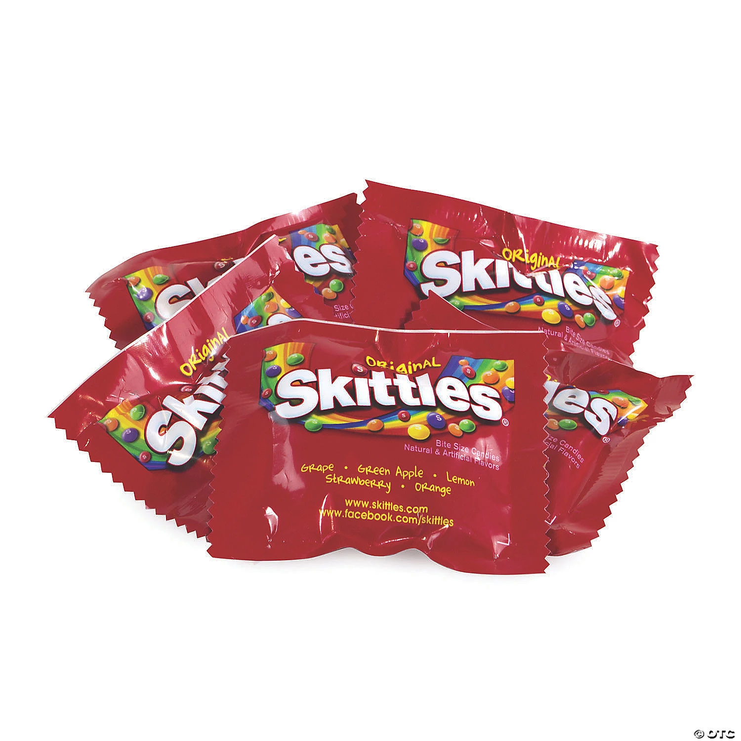 Taste the rainbow with a handful of fresh fruit flavored Skittles. With flavors like Cherry, Grape, Lemon, Orange, and Green Apple these hard-shelled chewy candies will be an instant hit in the office. Plus, with 4 lbs. (or approximately 80 packets) of Skittles Fun Size Packs, there is plenty to fill the pinata or candy buffet at your next party or celebration. Enjoy an on-the-go sugar rush with convenient Skittles fun Size Packs. Candy is non-returnable. For more information, visit our “Return Policy” page located on our website.Special Shipping Information: This item ships separately from other items in your order. This item cannot ship to a P.O. Box. This item may be subject to additional processing days. ITEM IS NOT ELIGIBLE FOR EXPEDITED SHIPPING