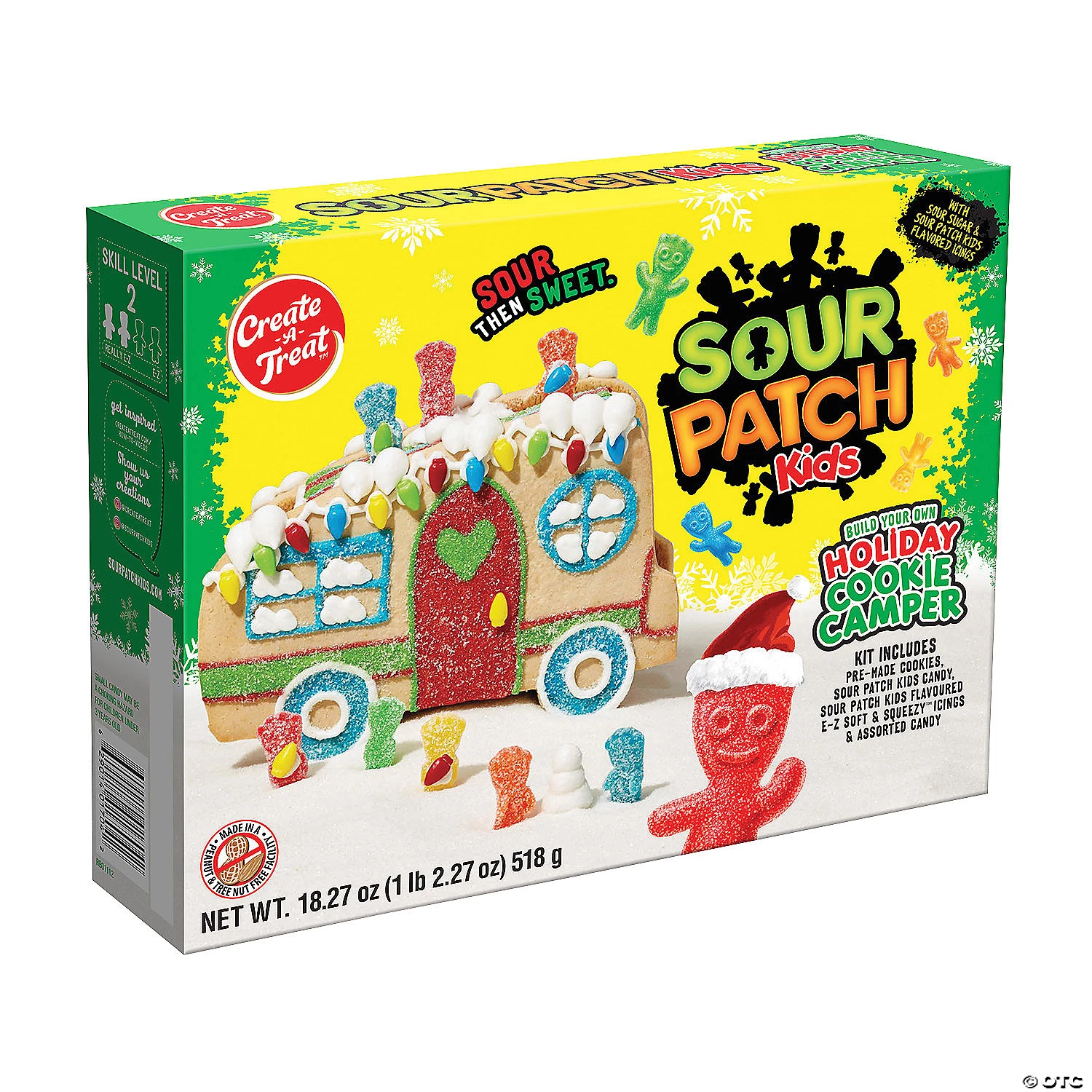 What’s cooler than a gingerbread house? A cookie camper featuring Sour Patch Kids candy, that’s what! This fun holiday kit makes it easy to create an edible holiday camper with pre-made cookies, Sour Patch Kids candy in varying shapes along with other candy and icing in easy-to-squeeze containers. A fun and simple holiday project, this is a cookie decorating kit the entire family can enjoy together. Cardboard box, 10 1/4″ x 2 1/4″ x 7 3/4″. Total wt., 18.27 oz.• Edibles are non-returnable. For more information, visit our “Return Policy” page located on our website.• Ingredient, nutrition, allergen and other product information are provided on our Web and Mobile sites for reference purpose only, without warranty or representation as to accuracy. Manufacturers adjust their labeling regularly and are solely responsible for the accuracy of the information. For general questions concerning these items, please contact our customer service at 800-228-0475.
