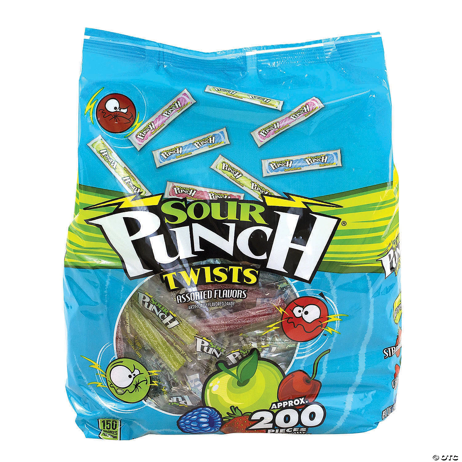 Pucker up and get ready to enjoy the deliciously tart taste of this Sour Punch Twists Pouch. Choose from either Cherry, Strawberry, Apple or Blue Raspberry sour twists and send your taste buds on a ride. These Sour Punch Twists are individually wrapped and are great for filling a pinata or candy buffet. Jolt your mouth awake with the electrifyingly sour flavors of this Sour Punch Twists pouch. With 185 pieces of soft, chewy twists, you’ll have plenty of Sour Punch sour candy to go around!Candy is non-returnable. For more information, visit our “Return Policy” page located on our website.Special Shipping Information: This item ships separately from other items in your order. This item cannot ship to a P.O. Box. This item may be subject to additional processing days. ITEM IS NOT ELIGIBLE FOR EXPEDITED SHIPPING