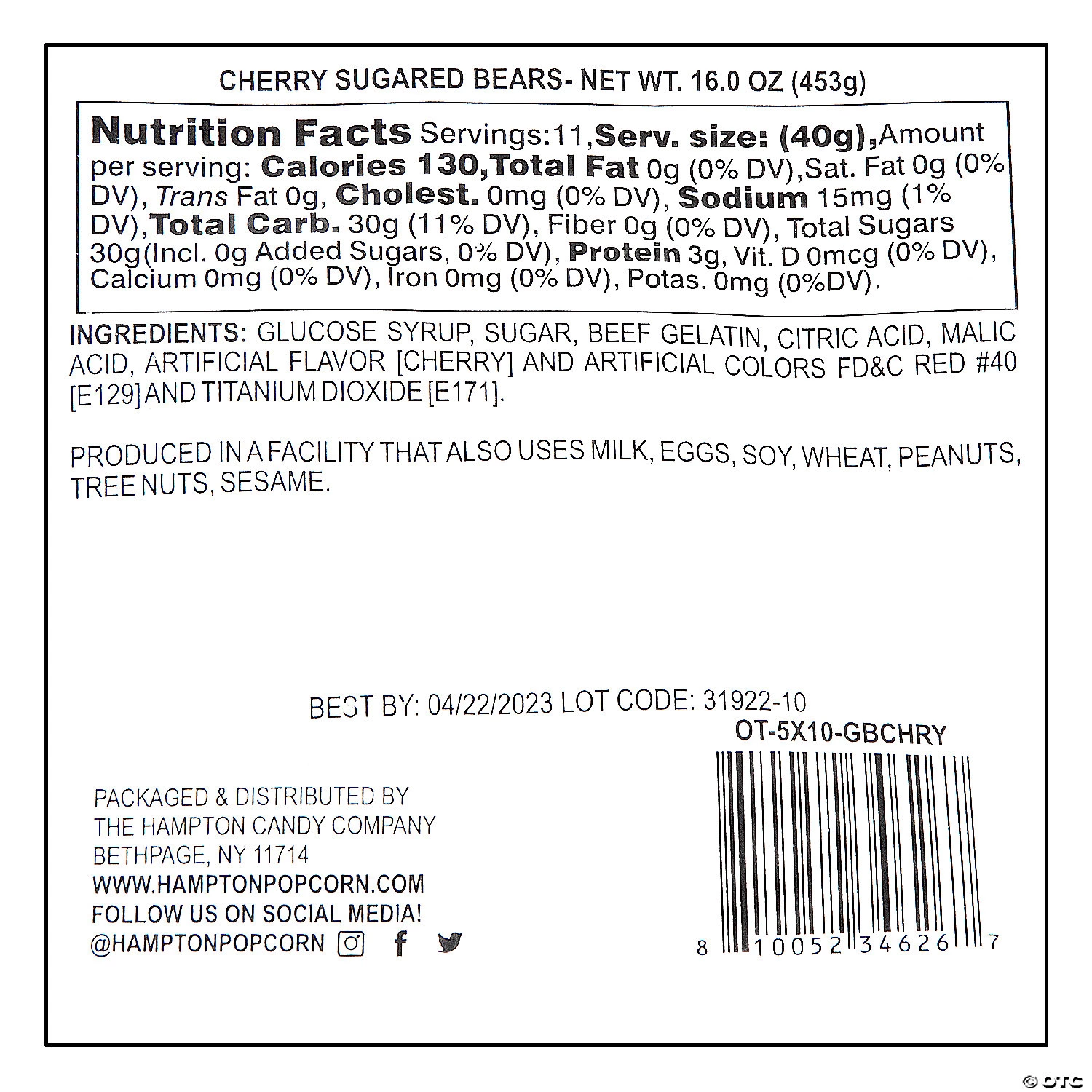 No candy buffet or goody bag is complete without these sugary sweet gummy teddy bears! Pick your favorite flavor and watch guests gobble up these cute candies with gusto. These bears will look great amidst other candies on a treat table at your next wedding reception, anniversary party, bridal shower or graduation. (Approx. 100 pcs. per unit) Dairy-Free. Fat-free. Nut-free. Total wt., 1 lb.• Candy is non-returnable. For more information, visit our “Return Policy” page located on our website. • Made in the USA. Important Country of Origin Information: For certain items sold by OTC on our Web or Mobile sites, country of origin information can change and what is displayed may not be accurate or consistent with manufacturer information. For up-to-date country of origin information, it is recommended that you rely on product packaging or other manufacturer information.• Ingredient, nutrition, allergen and other product information are provided on our Web and Mobile sites for reference purpose only, without warranty or representation as to accuracy. Manufacturers adjust their labeling regularly and are solely responsible for the accuracy of the information. For general questions concerning these items, please contact our customer service at 800-228-0475.