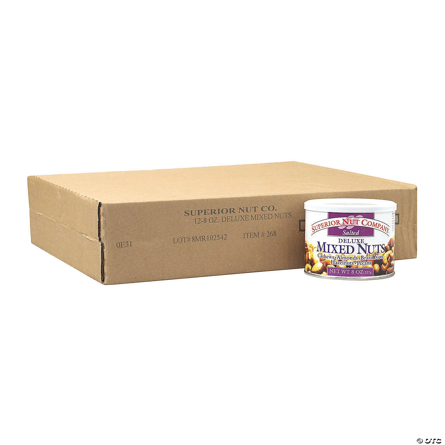Pop open one of these cans of Superior Nut Deluxe Salted Mixed Nuts, 8 oz, 12 Count and enjoy the rich, crunchy flavor of natural mixed nuts. These Cashews, Almonds, Brazil Nuts, Hazelnuts, and Pecans are high in Calcium and Iron, and an excellent source of Fiber. Great for office snacking and for any snack bowl, these crunchy nuts are the perfect pick-me-up snack. Superior Nut Deluxe Salted Mixed Nuts 8 oz, 12 Count is great for any office, home or breakroom. Grab a handful and crunch your way through the great, natural flavor! Edibles are non-returnable. For more information, visit our “Return Policy” page located on our website.Special Shipping Information: This item ships separately from other items in your order. This item cannot ship to a P.O. Box. This item may be subject to additional processing days. ITEM IS NOT ELIGIBLE FOR EXPEDITED SHIPPING