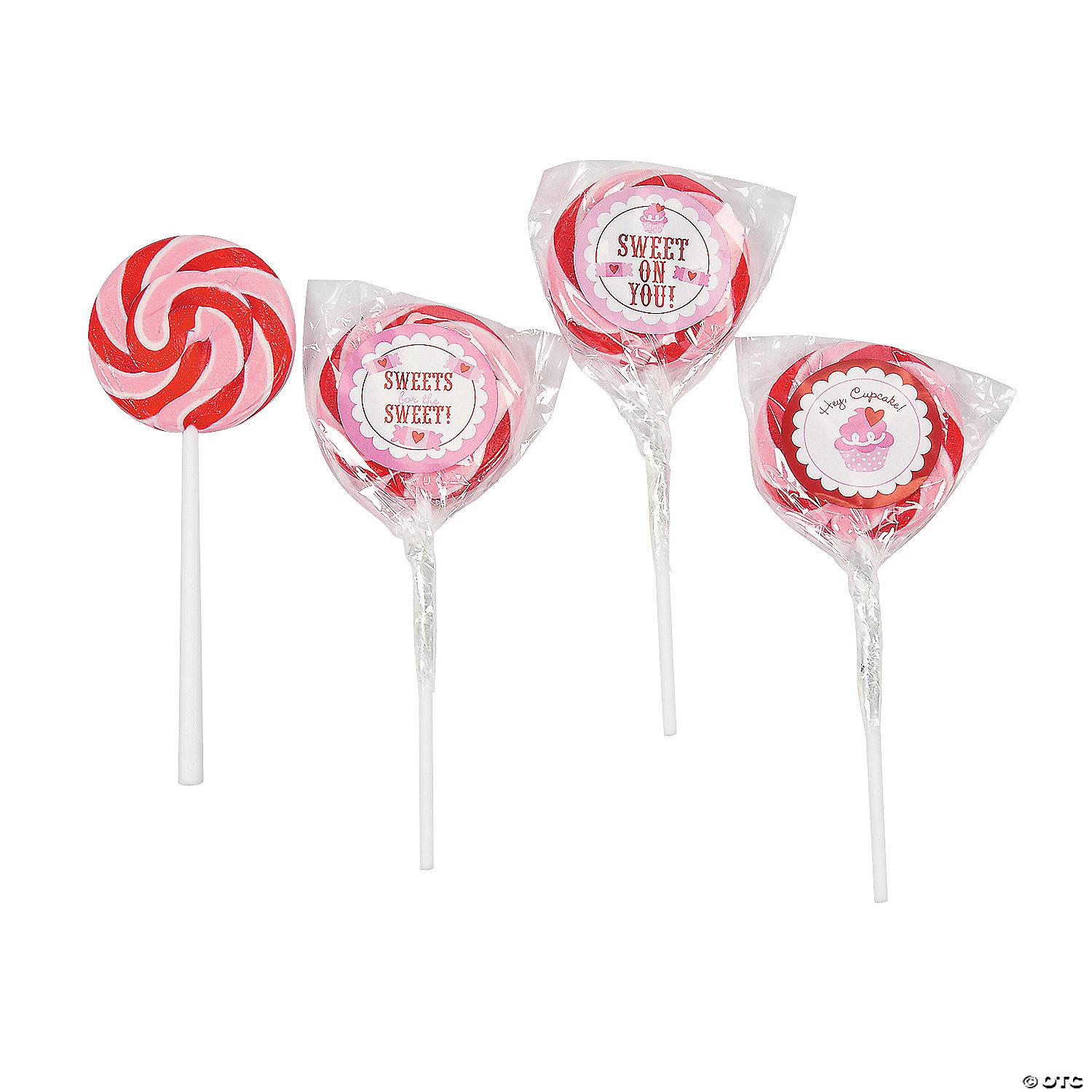 Pink and white swirls make these yummy lollipops perfect for that special someone! Each individually-wrapped pop features an attached sticker with a Valentine message such as “Sweet on You,” “Sweets for My Sweet” or “Hey, Cupcake!” Perfect for Valentine’s Day party treat bags and Valentine’s Day candy buffets. Each 2″ pop is on a 4″ plastic stick. Strawberry flavor. Individually wrapped. Fat-free. Total wt., 7 oz. Candy is non-returnable. For more information, visit our “Return Policy” page located on our website. © OTC