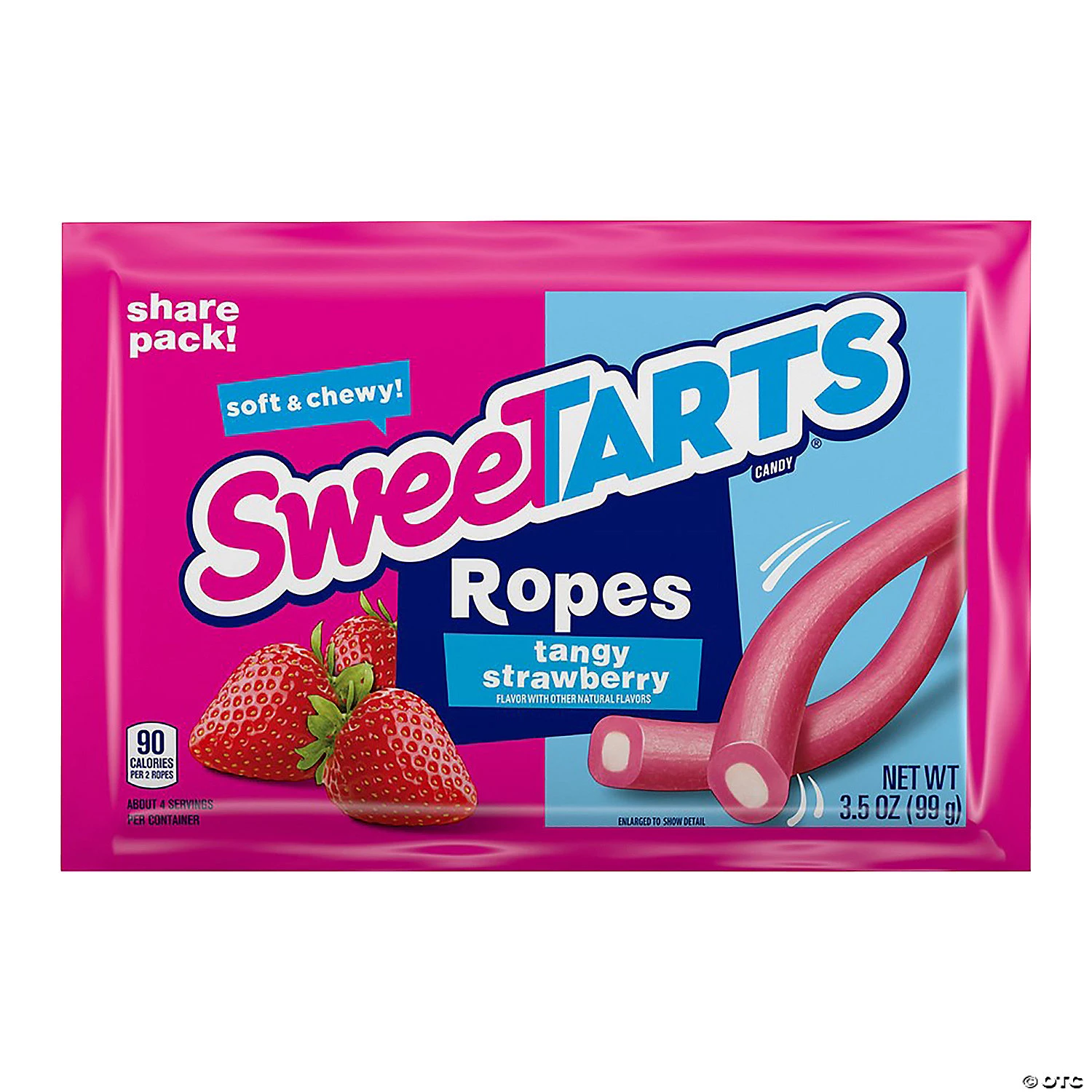 Get ready for a soft and chewy treat with these yummy candy ropes. These packs are perfect for sharing! Great as prizes or handouts, these candy ropes are just the right size to slip into swag bags or favor packages. Keep these SweeTart ropes on hand so you always have a soft and chewy treat with tangy strawberry flavor ready for a sweet tooth moment! Strawberry flavor. (8 pcs. per pkg. 12 pkgs. per unit) Fat-free.Total wt., 42 oz.• Candy is non-returnable. For more information, visit our “Return Policy” page located on our website.• Made in the USA, Important Country of Origin Information: For certain items sold by OTC on our Web or Mobile sites, country of origin information can change and what is displayed may not be accurate or consistent with manufacturer information. For up to date country of origin information, it is recommended that you rely on product packaging or other manufacturer information.• Ingredient, nutrition, allergen and other product information are provided on our Web and Mobile sites for reference purpose only, without warranty or representation as to accuracy. Manufacturers adjust their labeling regularly and are solely responsible for the accuracy of the information. For general questions concerning these items, please contact our customer service at 800-228-0475.