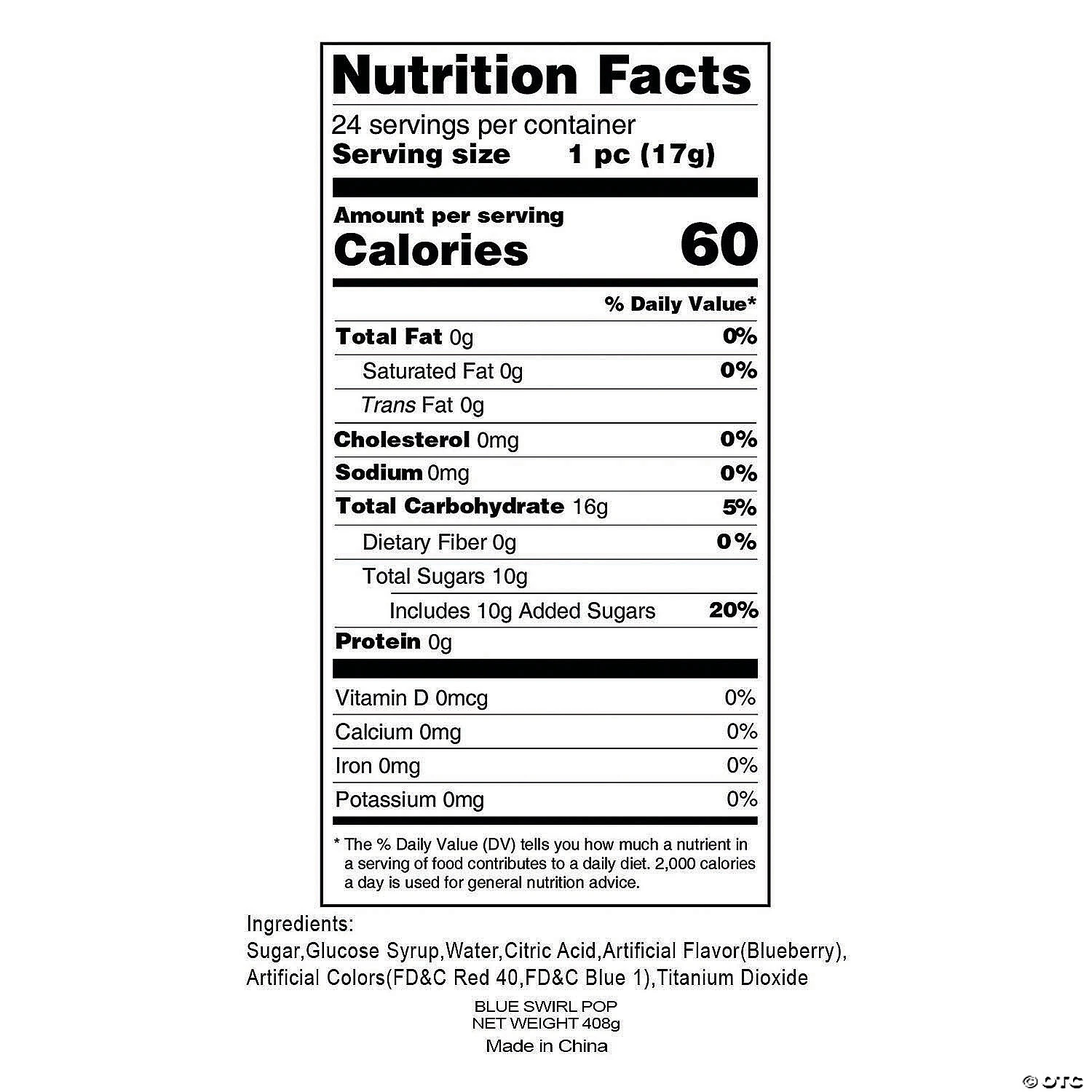 These suckers are a great treat to have around during wedding receptions, birthday parties, carnivals, fundraisers or wherever you need to brighten up your treat table or candy buffet! Sweet, tasty fun for both kids and adults! Blueberry flavor. Individually wrapped. Each 2″ pop is on a 4 1/2″ plastic stick. (2 dozen per unit) Total wt., 14 oz. Fat-free. Gluten-free. © OTC• Candy is non-returnable. For more information, visit our “Return Policy” page located on our website.• Ingredient, nutrition, allergen and other product information are provided on our Web and Mobile sites for reference purpose only, without warranty or representation as to accuracy. Manufacturers adjust their labeling regularly and are solely responsible for the accuracy of the information. For general questions concerning these items, please contact our customer service at 800-228-0475.