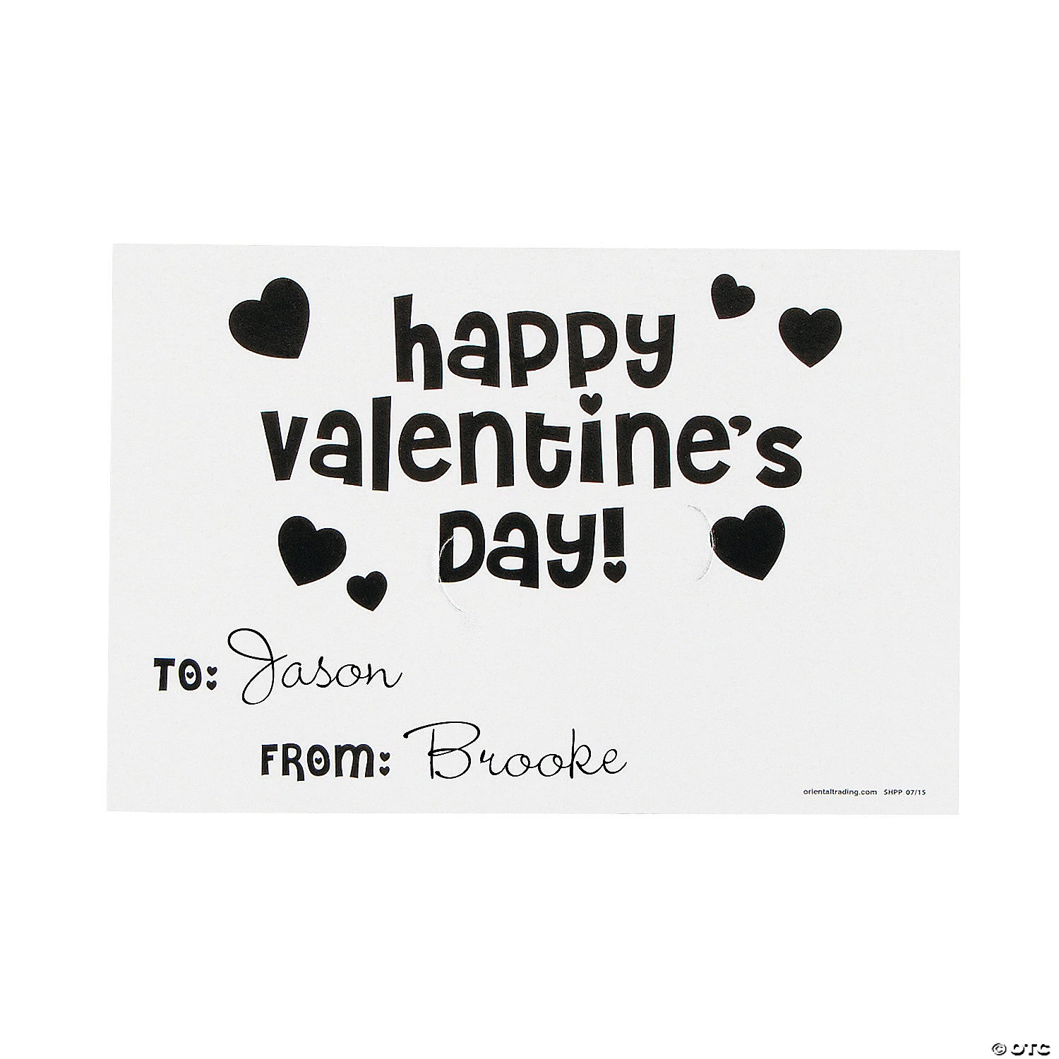 Our Valentines with suckers are perfect for a school Valentine’s Day party. Each cherry-flavored treat includes an exchange card to make these kids’ Valentines even sweeter! Dog Valentine Exchange Cards with Suckers are also perfect party favors for treat bags or goody boxes. Everyone will love the precious puppies on the exchange cards, which feature a To/From space to make them even more special. Each 2″ sucker is on a 4 1/2″ plastic stick. Cherry flavor. Individually wrapped. Includes twenty four 6″ x 4″ exchange cards with To/From space and 24 suckers. Fat-free. Simple assembly required. Candy is non-returnable. For more information, visit our “Return Policy” page located on our website. Total wt., 14 oz. © OTC