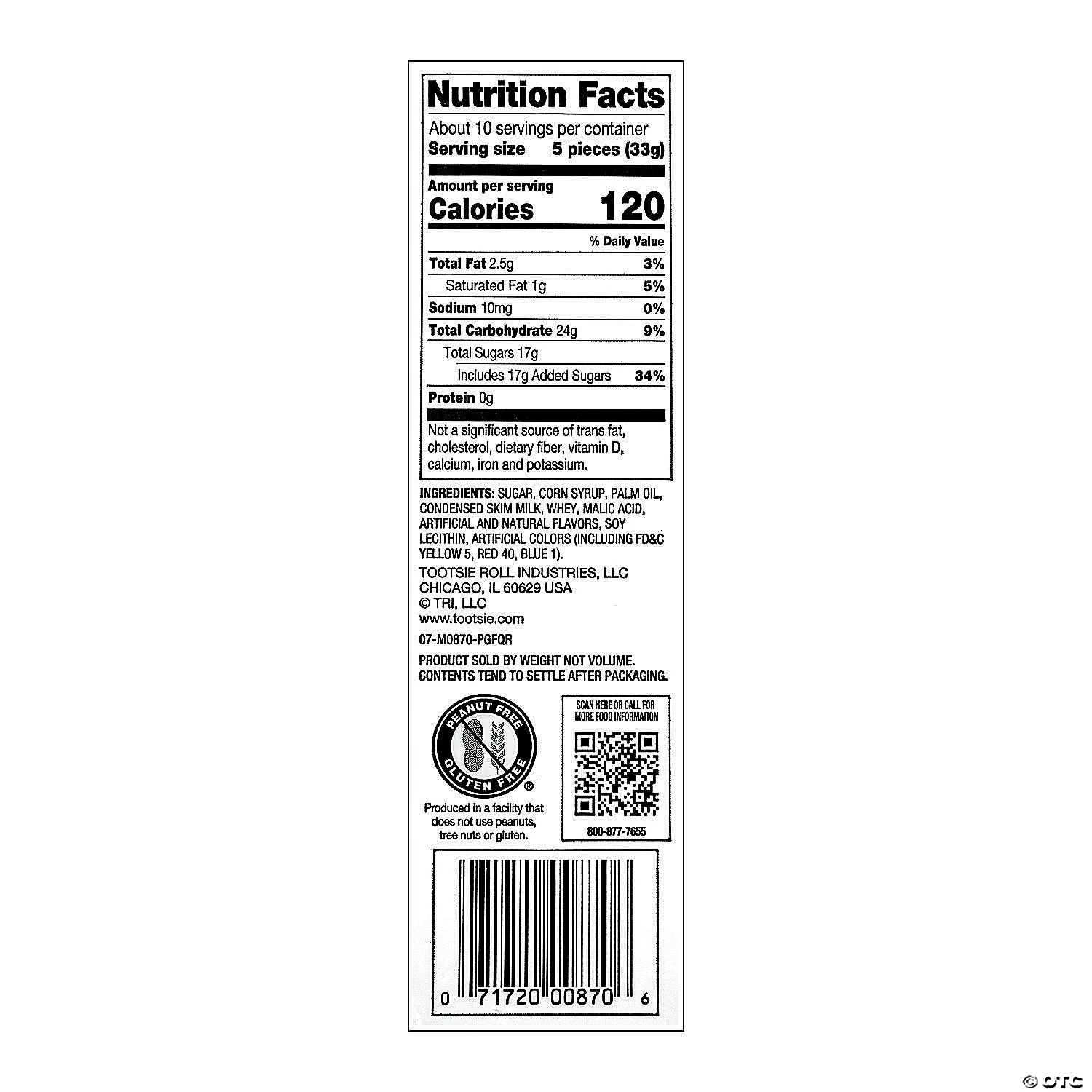 Enjoy a sweet spin on a classic treat with these Tootsie Roll® Fruit Rolls®! In delicious assorted fruit flavors, this chewy candy is fun for party favor bags, rewards, event giveaways and more. From Halloween and Christmas to an everyday treat, this name brand candy will satisfy any sweet tooth! • Assorted fruit flavors. • Individually wrapped. • (Approx. 4 dozen per unit) • Total wt., 11 oz.• Gluten free.• Kosher. • Nut free.• Candy is non-returnable. For more information, visit our “Return Policy” page located on our website.• Made in the USA. Important Country of Origin Information: For certain items sold by OTC on our Web or Mobile sites, country of origin information can change and what is displayed may not be accurate or consistent with manufacturer information. For up to date country of origin information, it is recommended that you rely on product packaging or other manufacturer information.• Ingredient, nutrition, allergen and other product information are provided on our Web and Mobile sites for reference purpose only, without warranty or representation as to accuracy. Manufacturers adjust their labeling regularly and are solely responsible for the accuracy of the information. For general questions concerning these items, please contact our customer service at 800-228-0475.