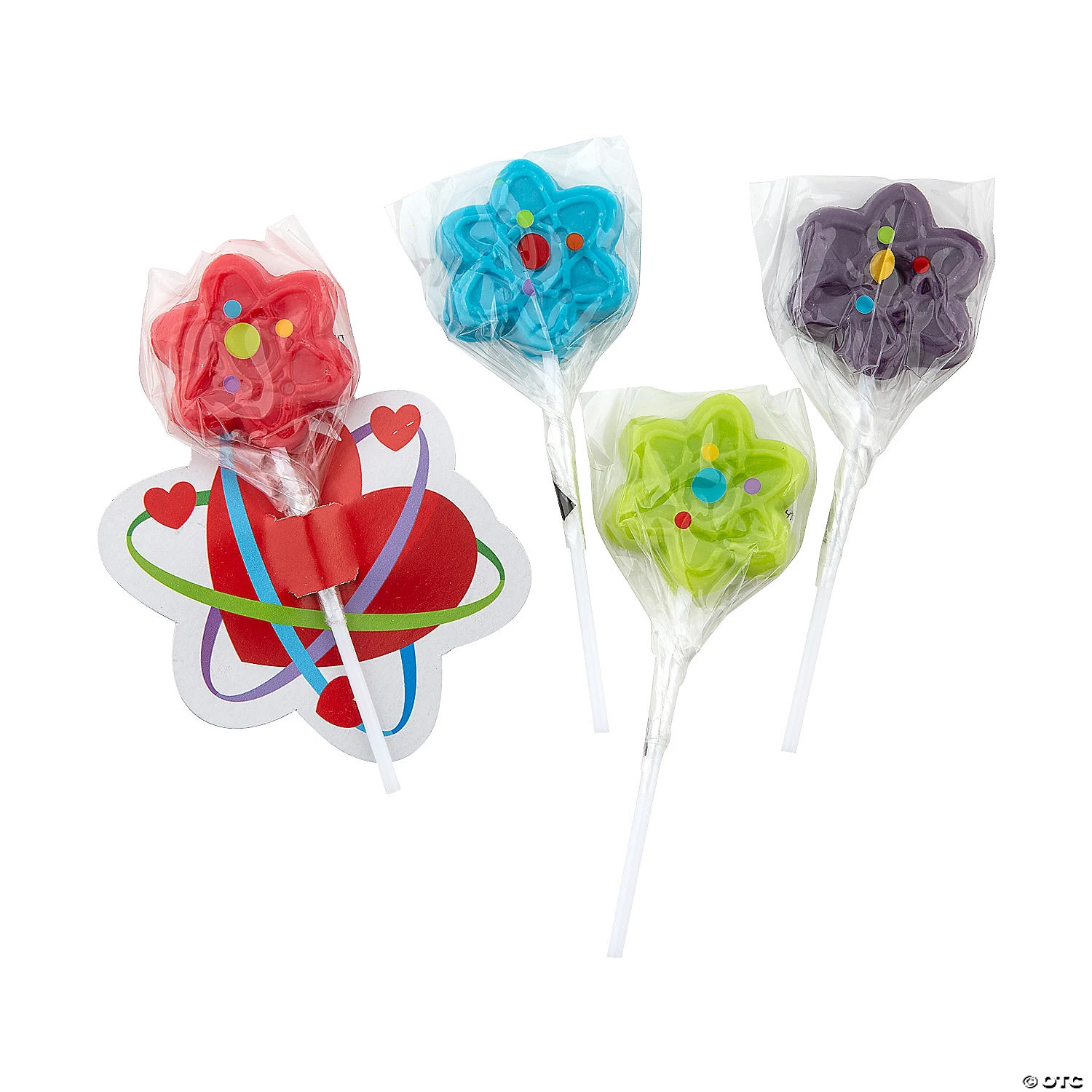Valentine’s Day meets science with these adorable handouts! Featuring an atom-shaped lollipop and a cute cardstock card with a To/From space, these handouts are perfect for a classroom Valentine exchange or as party favors for kids at a Valentine’s Day party. Add a scientific twist to a holiday that doesn’t typically receive a scientific nod. Assorted fruit flavors. (48 pcs. per unit) Makes 24. 2″ lollipop on a 4″ stick with 3 1/2″ cardstock card. Total wt., 14 oz. Simple assembly required. Candy is non-returnable. For more information, visit our “Return Policy” page located on our website. © OTC• Ingredient, nutrition, allergen and other product information are provided on our Web and Mobile sites for reference purpose only, without warranty or representation as to accuracy. Manufacturers adjust their labeling regularly and are solely responsible for the accuracy of the information. For general questions concerning these items, please contact our customer service at 800-228-0475.Includes:• 24 Science Party Frosted Lollipops (2″ lollipop on a 4″ stick.)• 24 Cardstock cards (3 1/2″)